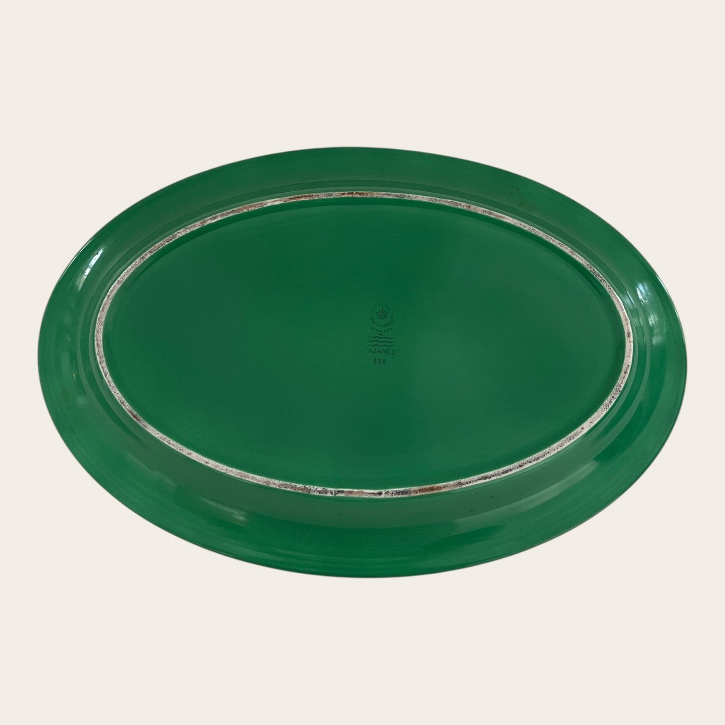 Royal Copenhagen, Aluminia, Plate, Green #624, 1st sorting, 33.5cm long, 22cm, Design Ursula Munch Petersen *Good condition with light signs of wear*