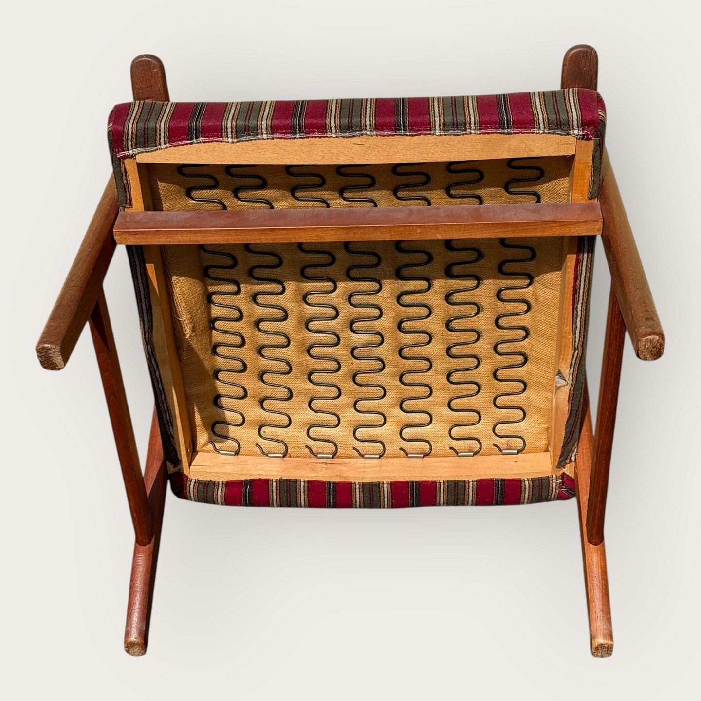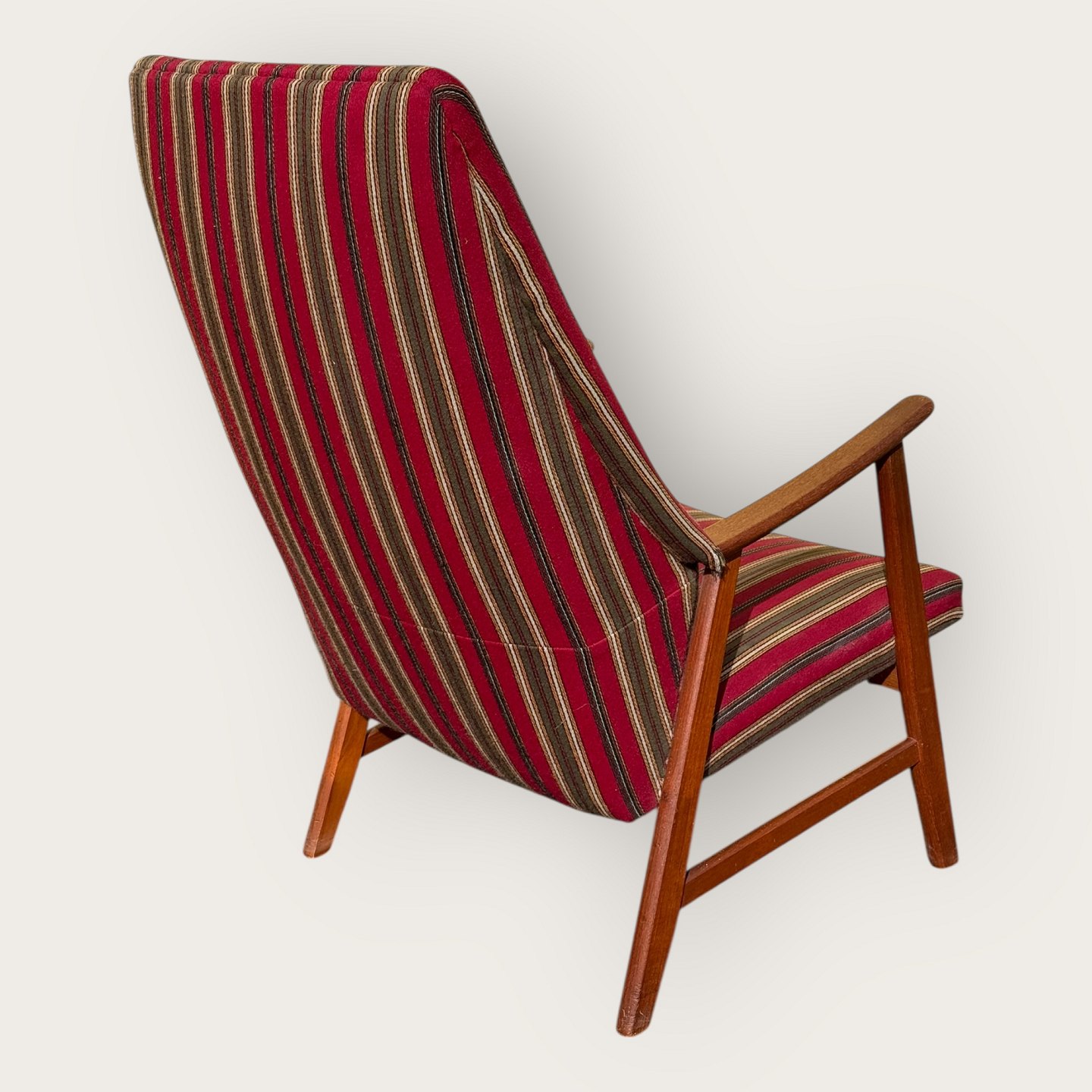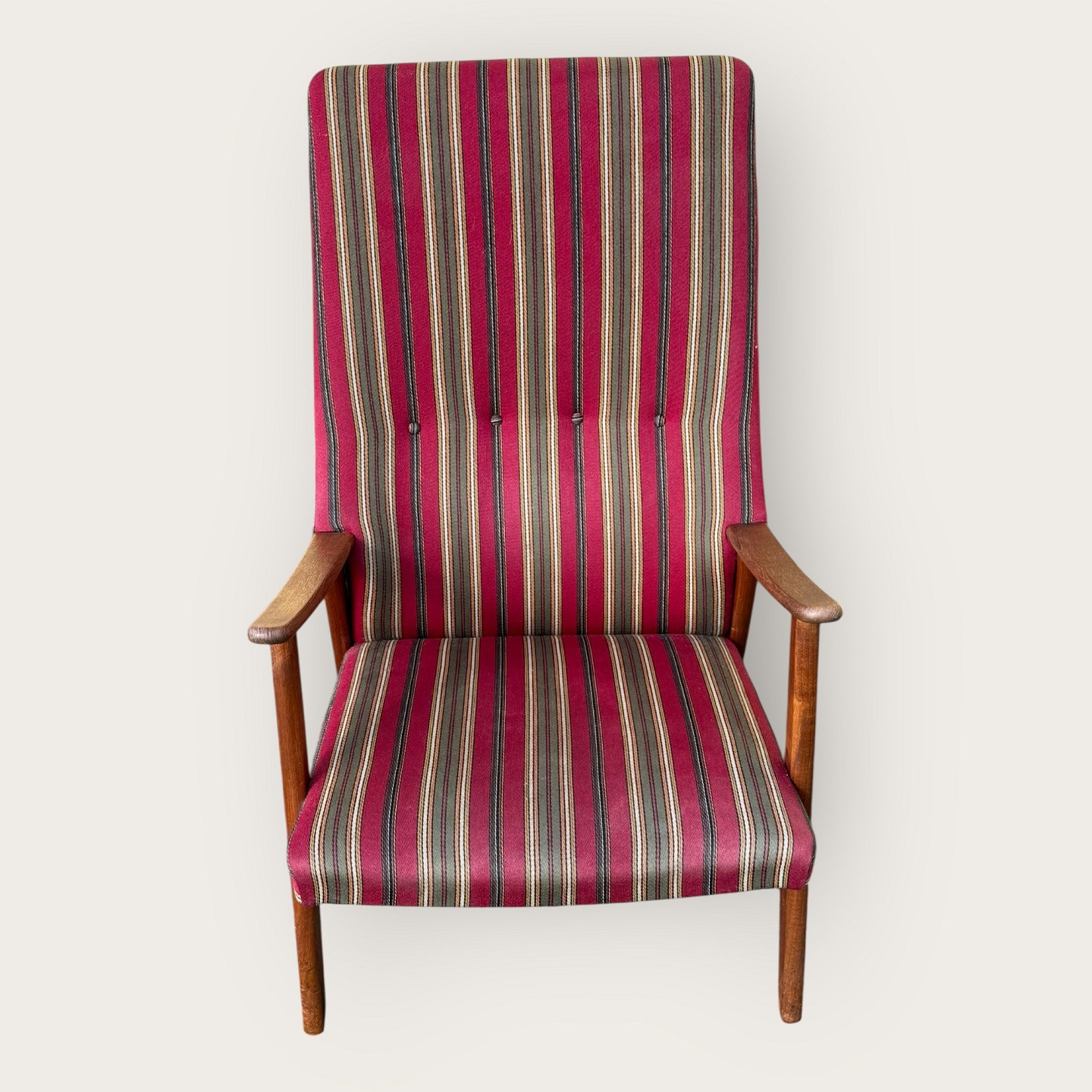Armchair in teak and fabric, seat height 36cm, width 62cm, backrest height 103cm, Scandinavian modern from the 1960s *good condition*