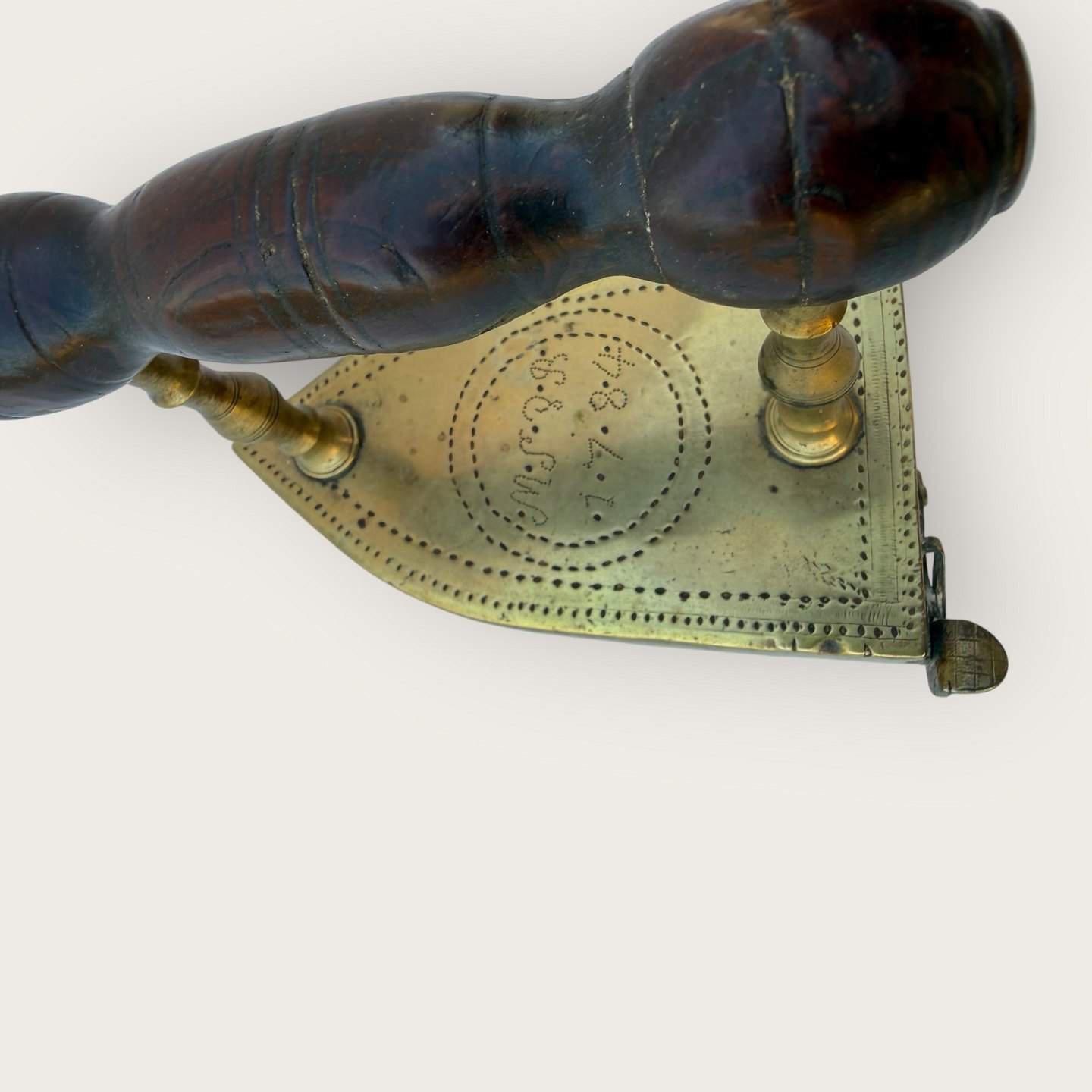 Brass iron, marked with owner's initials and 1784, Dimensions approx.: HxLxW 11x14x8cm *Good used condition*