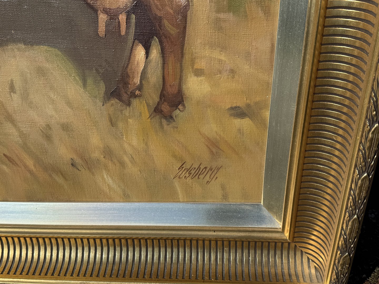 Knud Edsberg (1911-2003), Oil painting on canvas, cows in a field, Dimensions with frame 117x87 *Good condition with nice frame*