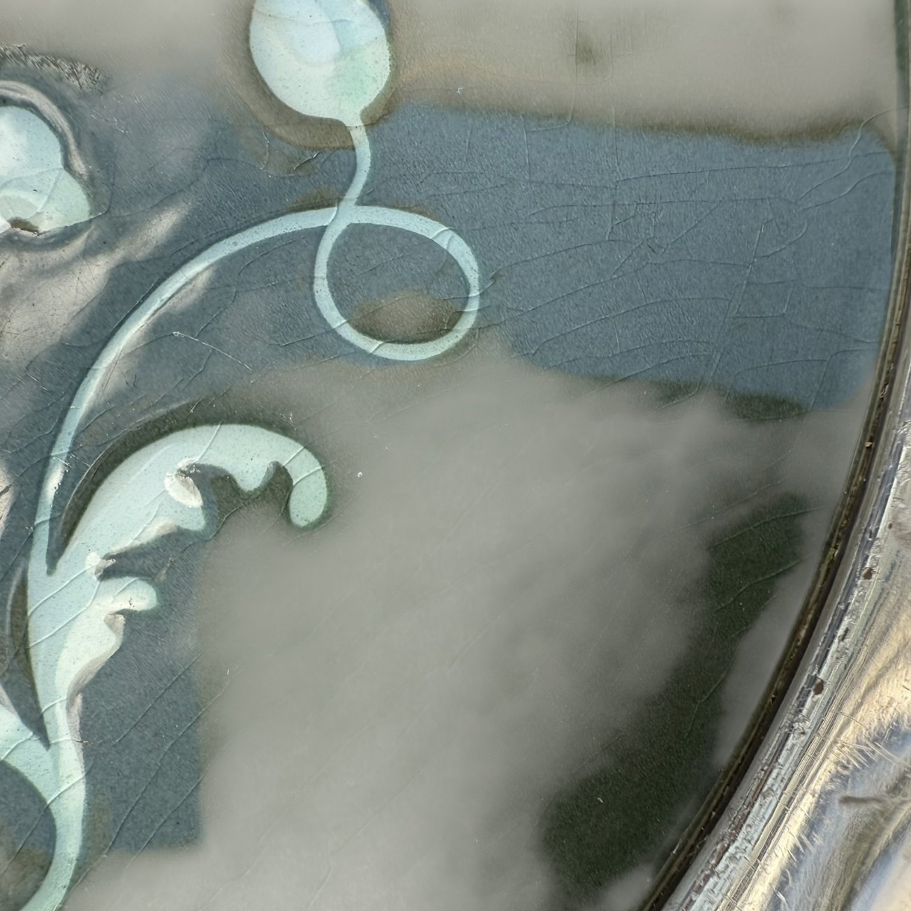 Villeroy & Boch, Flaschentablett / Schale, Durchmesser 17cm, Jugendstil / Art Nouveau aus Porzellan und mit versilbertem Rand, einige kleine Risse unter der Glasur (siehe Foto), ansonsten in gutem Zustand