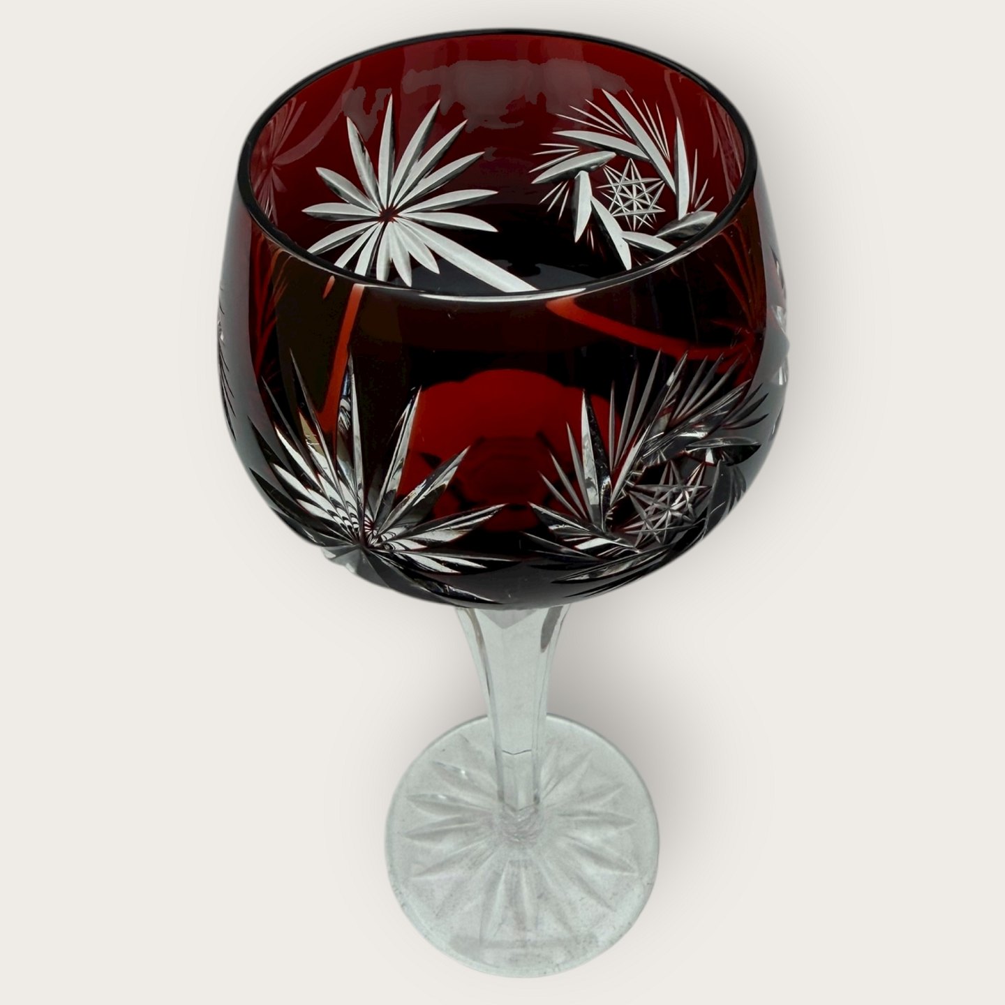 Böhmisches Kristallglas, Weinglas mit Schliff, Bordeaux, 19,5 cm hoch, 8 cm Durchmesser *Perfekter Zustand*