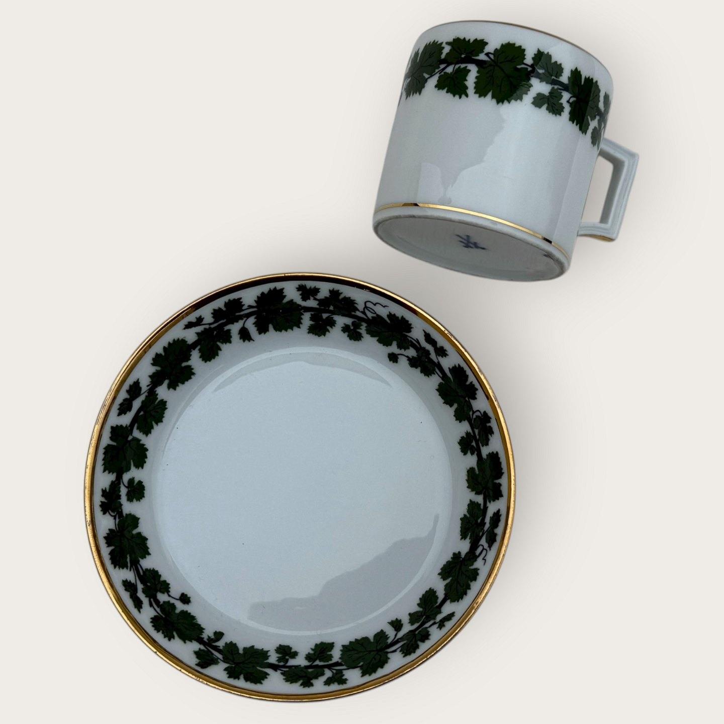 Meissen, kleine Kaffeetasse mit Weinlaub und Goldrand, Höhe 5 cm, Durchmesser 5 cm *sehr guter Zustand*