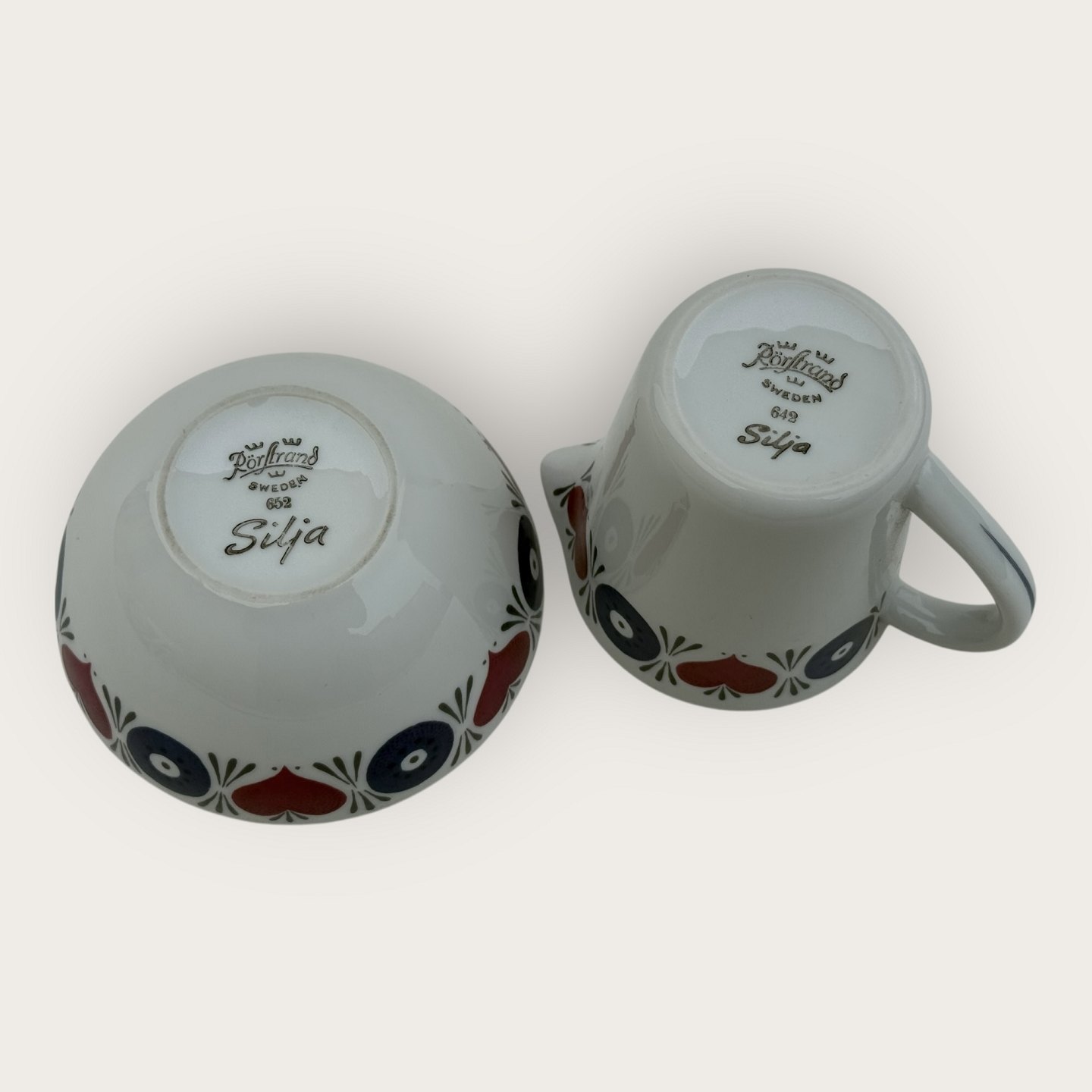 Rörstrand, Silja, Zucker- und Sahneset, Design Marianne Westman, Kännchenhöhe 7,5 cm, Zuckerdose Durchmesser 9,8 cm *Guter Zustand*