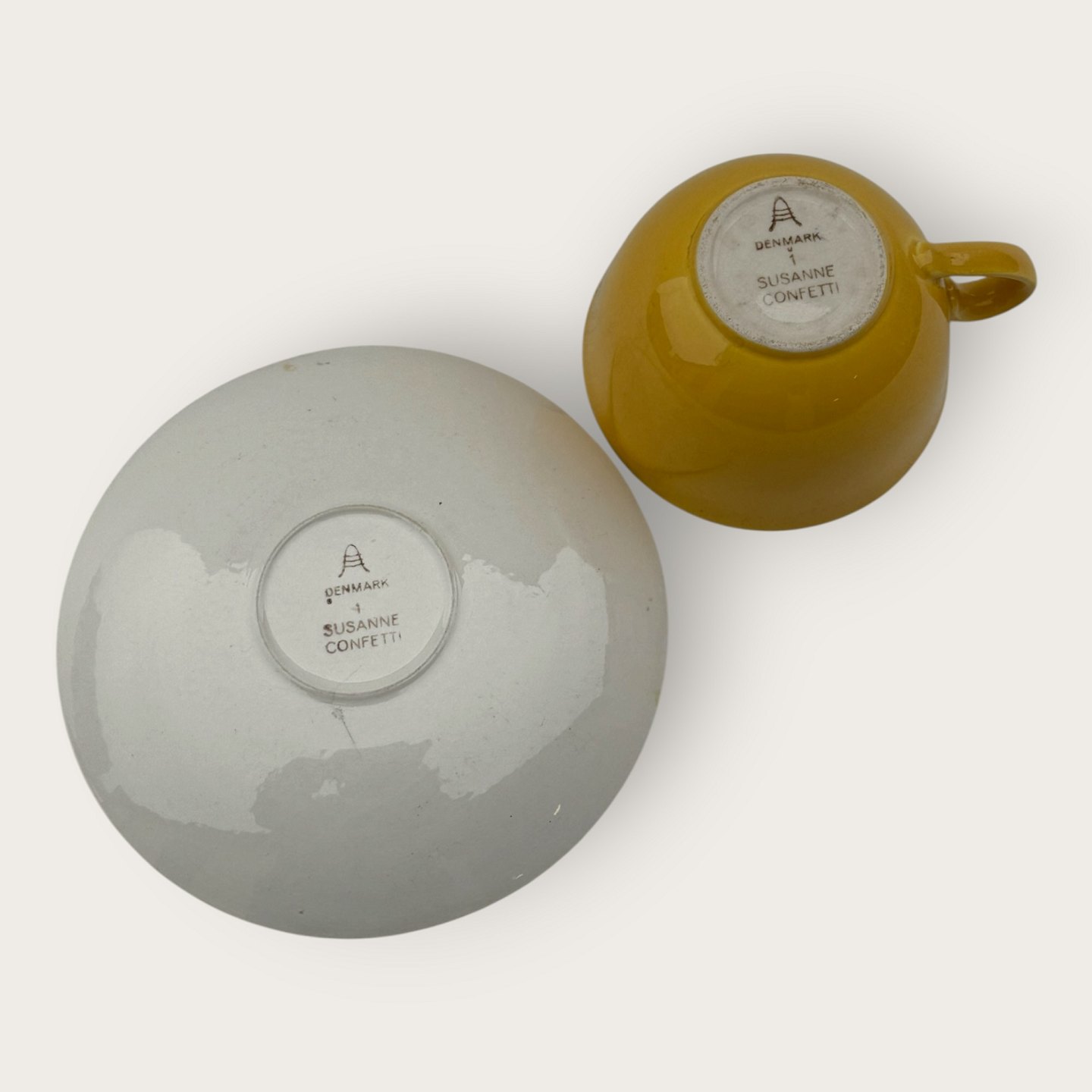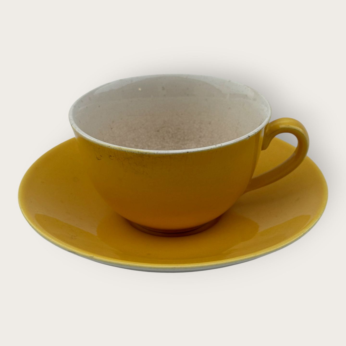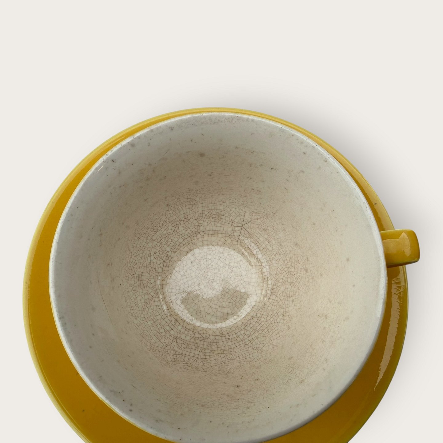 Royal Copenhagen, Aluminia, Confetti / Susanne, Teetasse, Gelb, 9,5 cm Durchmesser, 6 cm hoch *Die Tasse weist innen zahlreiche Risse auf.*