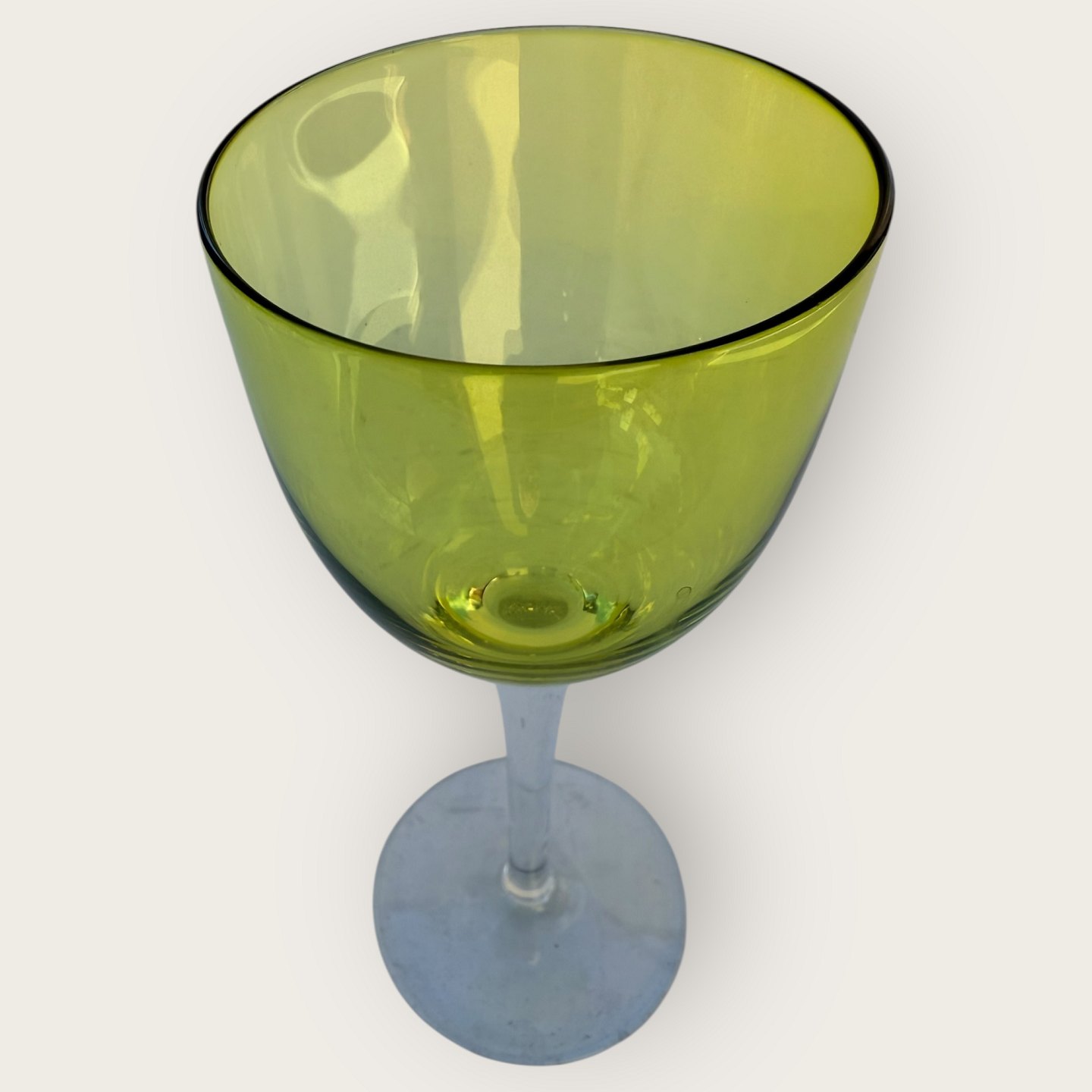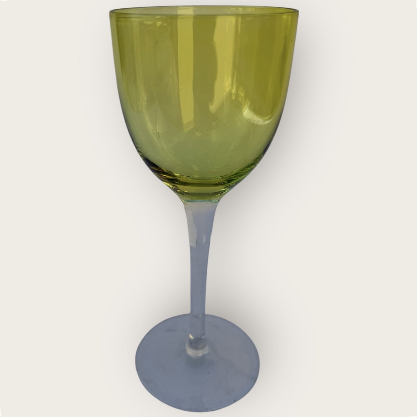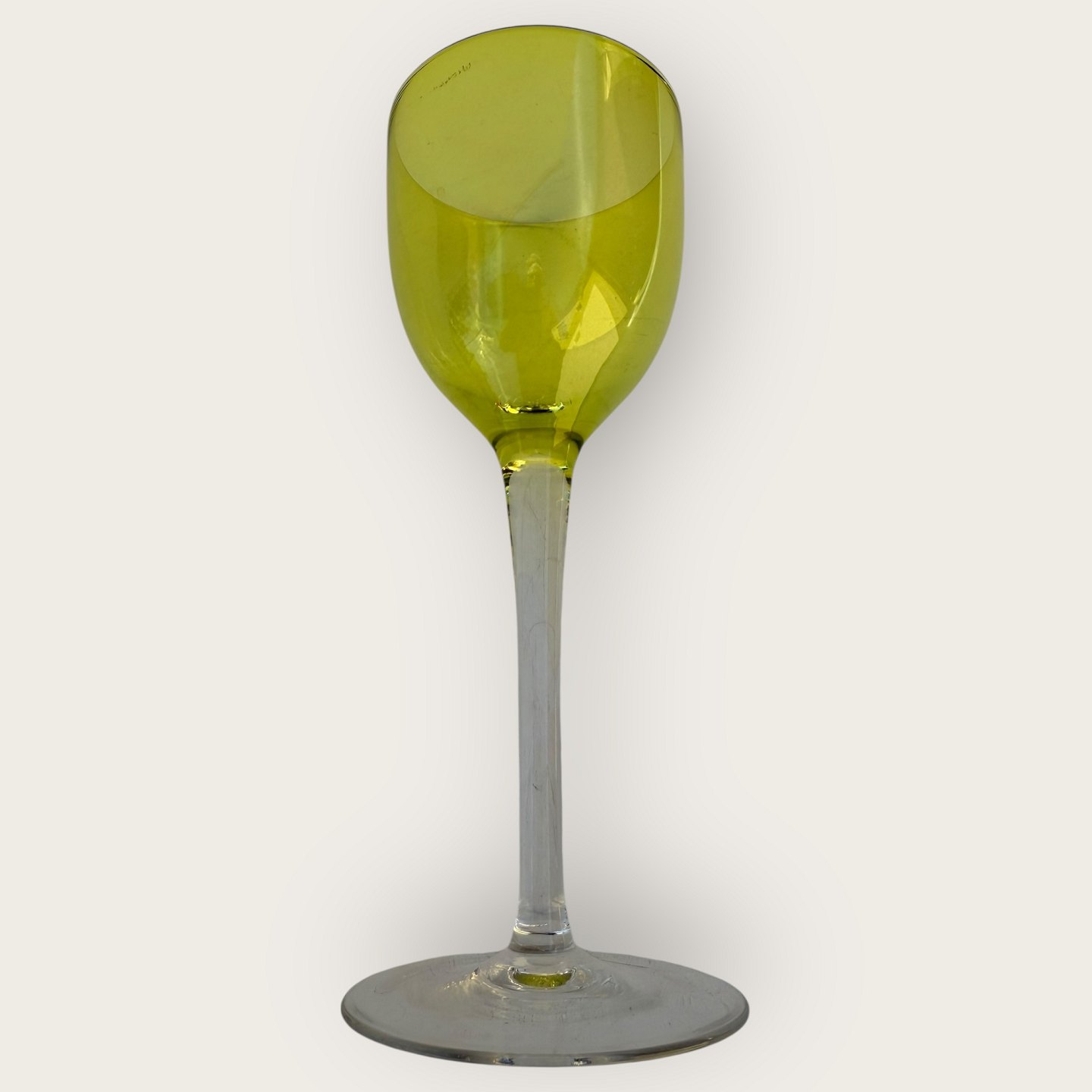 Baccarat, Perfection, Rhinvins glas på høj stilk og med grøn kumme, 19cm høje, fin stand.