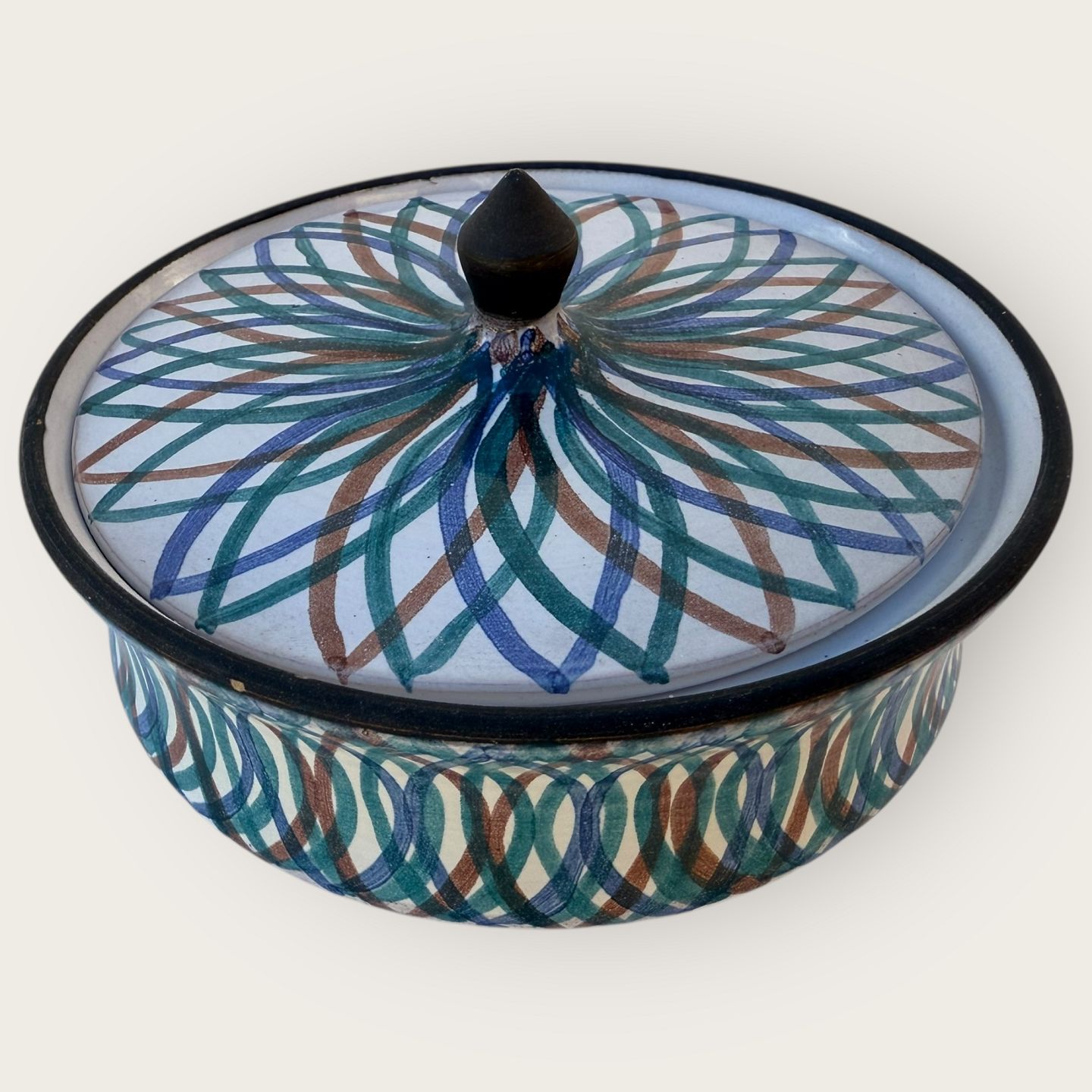 Grethe og Jørgen keramik, Stribet skål med låg, Diameter 13,5cm, højde 7,5cm, fin stand