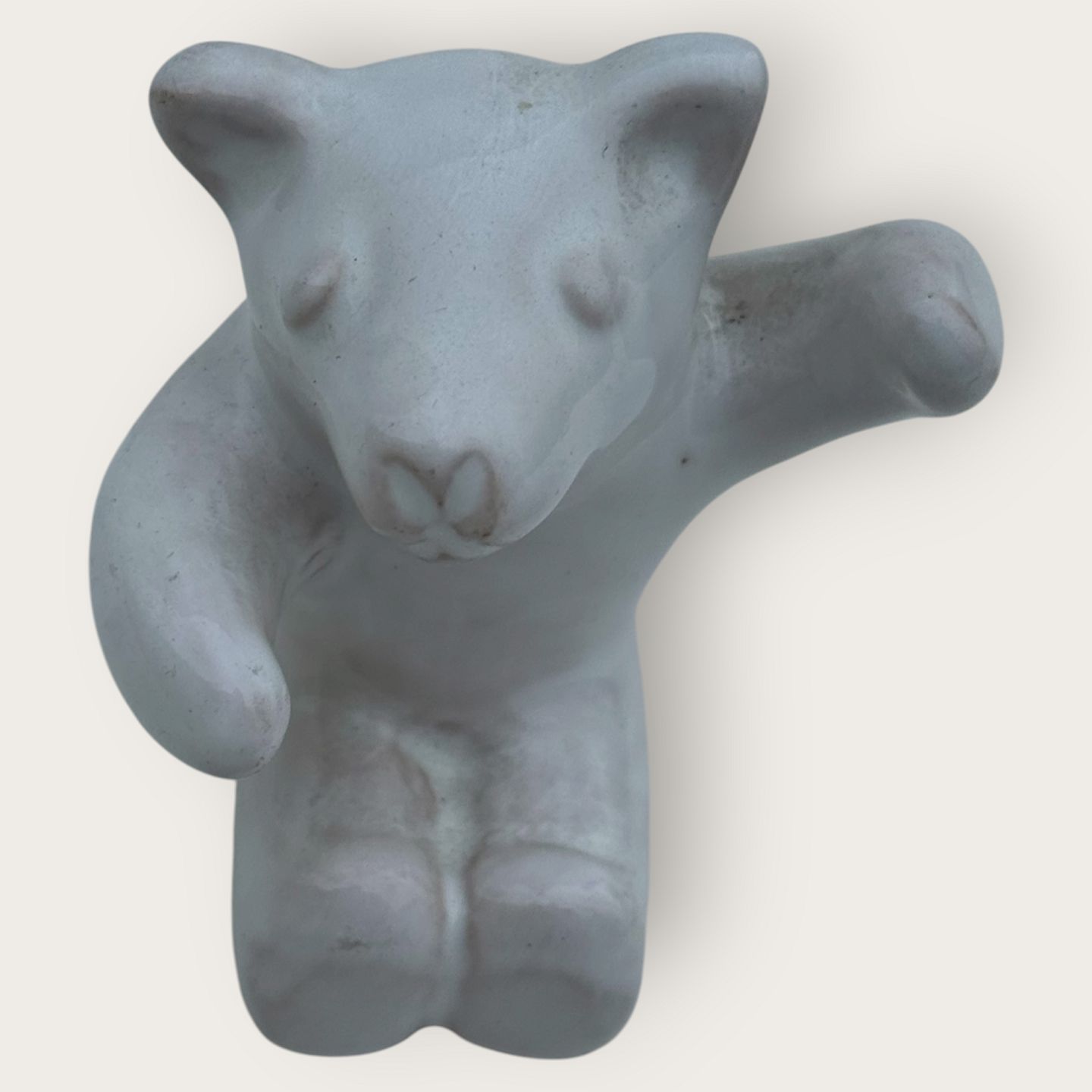 Bornholmsk keramik, Hjorth, Bjørne orkester, Tilskuer, bjørn med hvid glasur, ca. 5,5x5,5cm *Pæn stand*