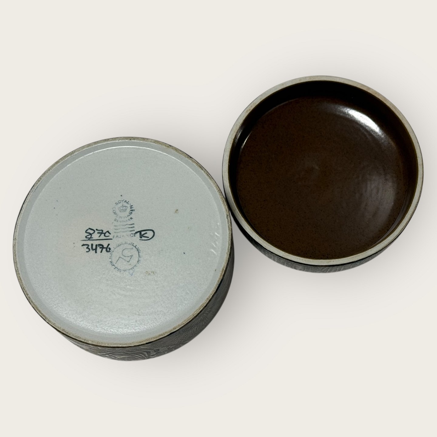 Royal Copenhagen, Lågkrukke, # 87C / 3476, diameter 11cm, højde 6,5, design Nils Thorsson *Flot stand*