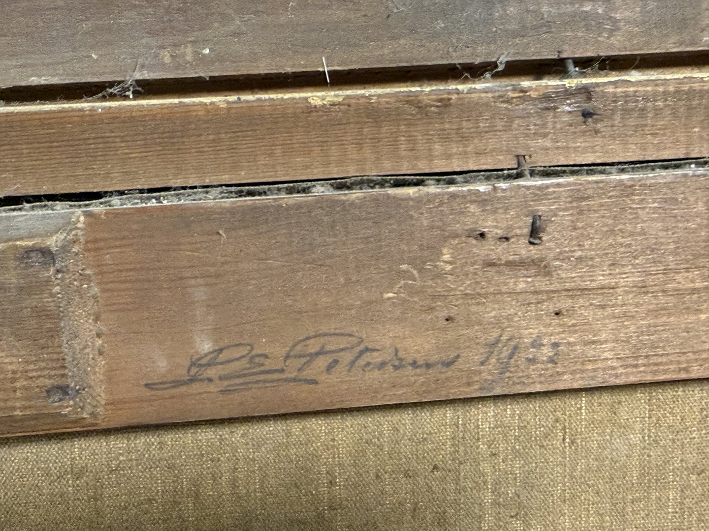 Peter Elias Petersen (1859-1950), Marmorbroen ved Christiansborg i København med godt lys over bro og vand, Signeret P.E.P. og bag på påskrevet P. E. Peteresen 1922, Mål med ramme: 46,5x44,5cm *Fin stand*