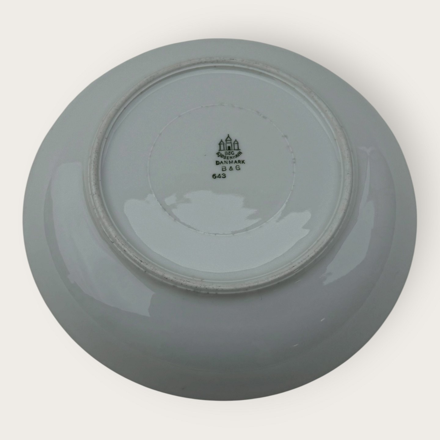 Bing & Grøndahl, Form 643 med bred turkis dekoration og guldkant, dyb tallerken, diameter 20cm, 1. sortering, *pæn stand*