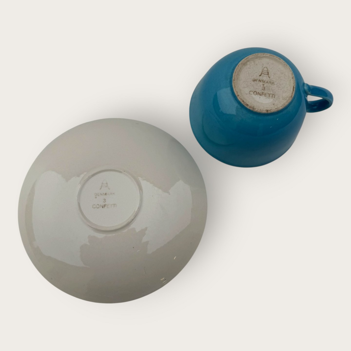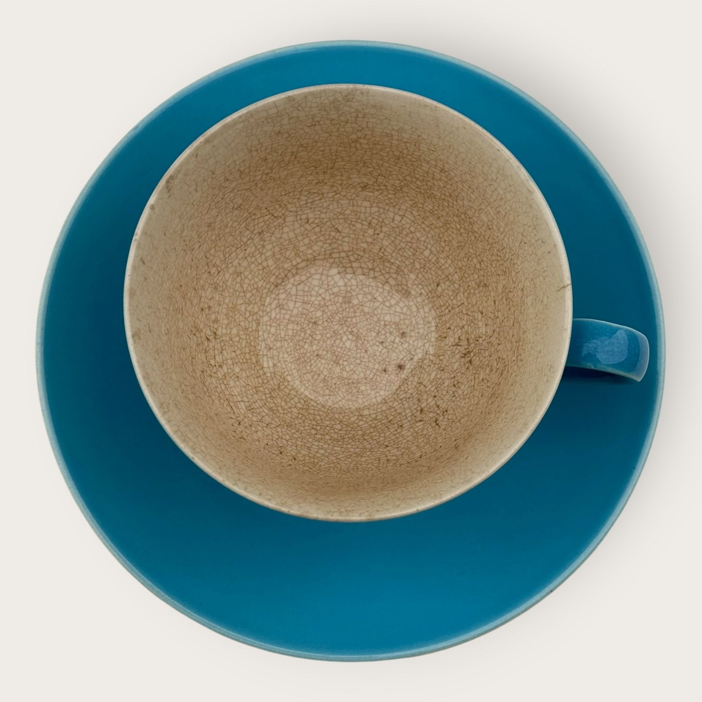 Royal Copenhagen, Aluminia, Confetti, tekop, Turkisblå, kop 9,5cm i diameter og 6cm høj *Fremstår med en del krakeleringer indvendigt i koppen*
