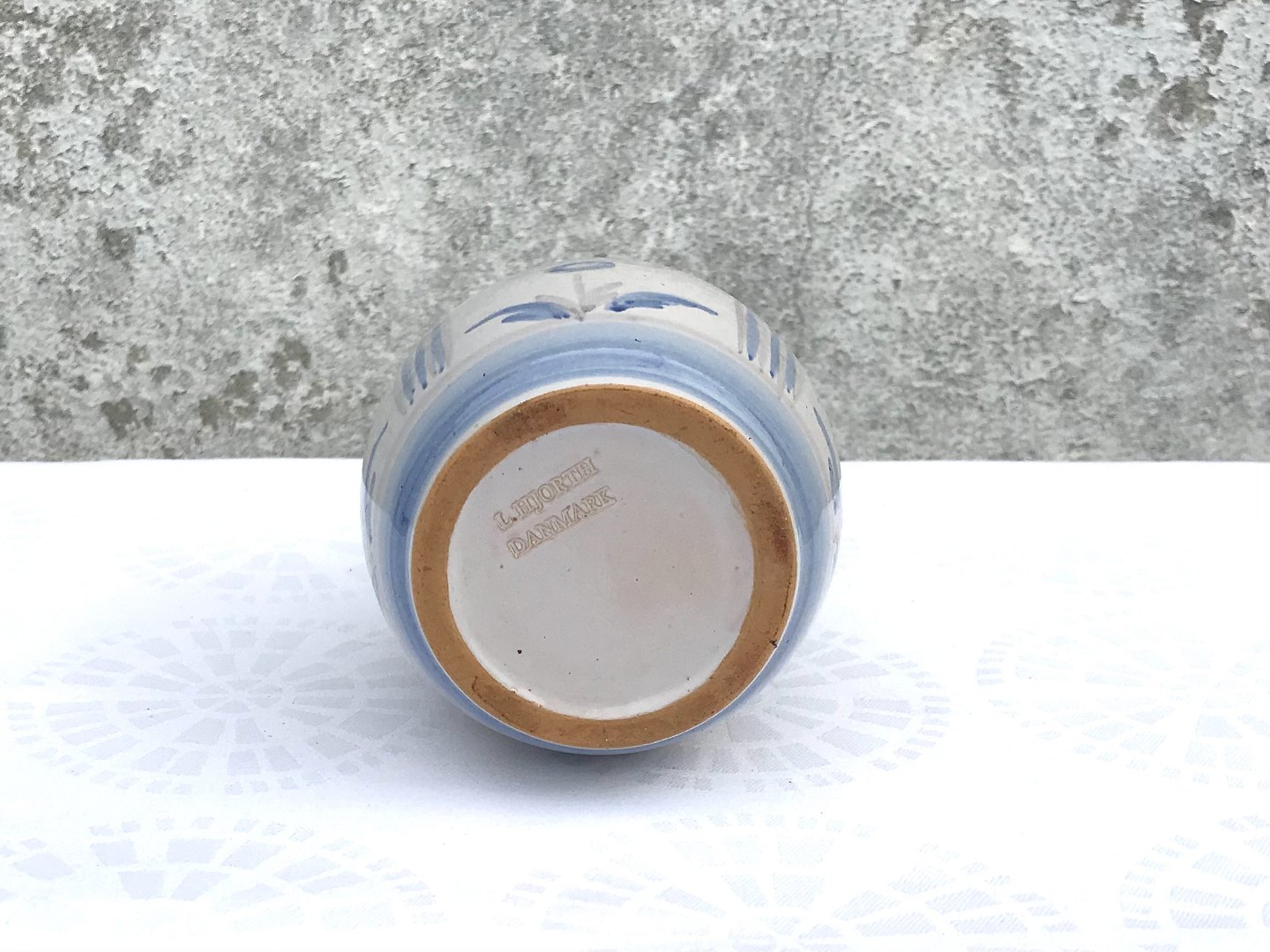 Bornholm ceramics, Hjorth, Vase with blue flowers, 13.5 cm high * Nice condition *