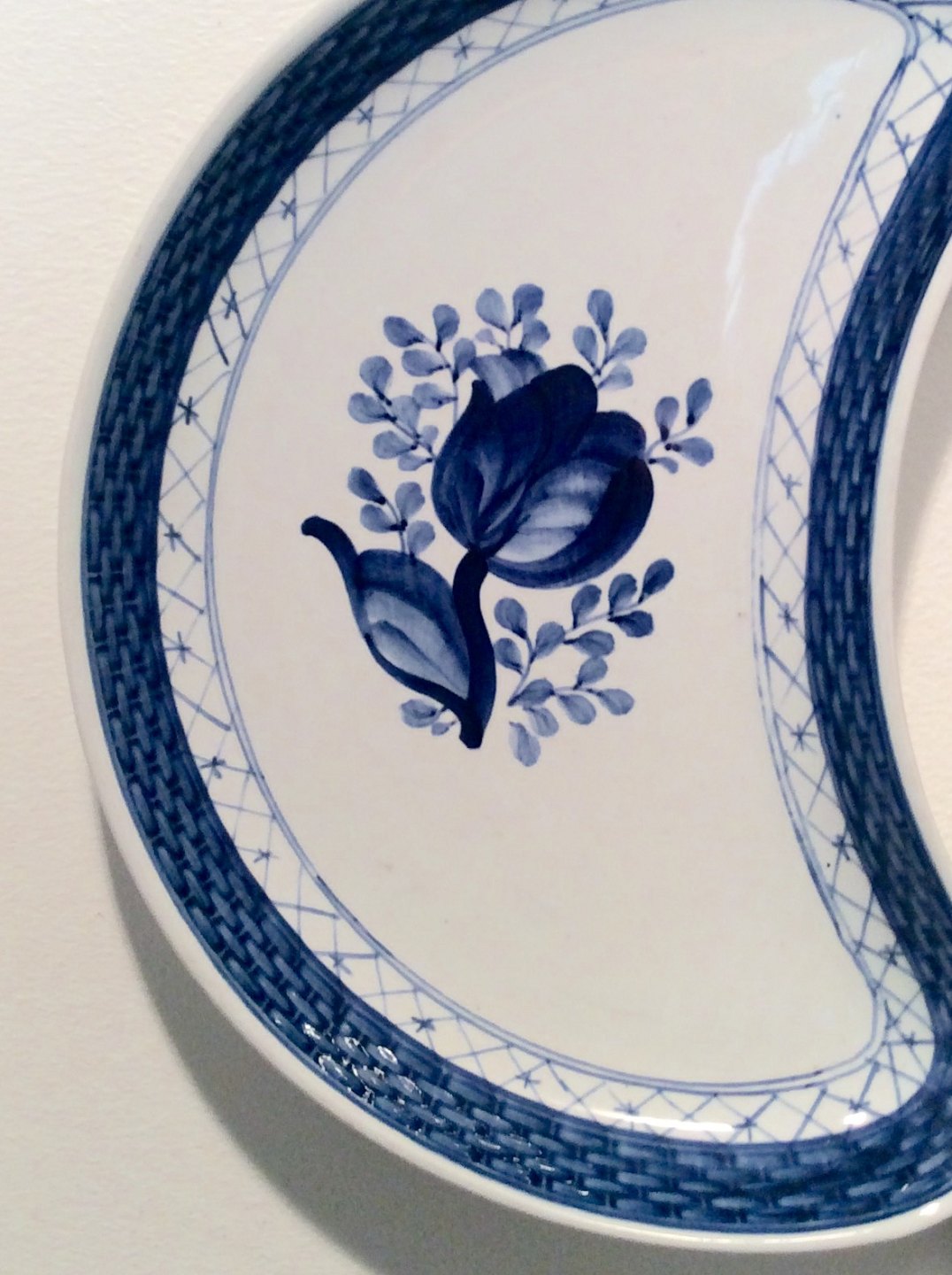 Royal Copenhagen, Aluminia, Trankebar, Mondschale # 11/1115, 22,5 cm breit, 1. Sortierung, Design Christian Joachim *Mit Rissen und leichten Verfärbungen unter der Glasur*