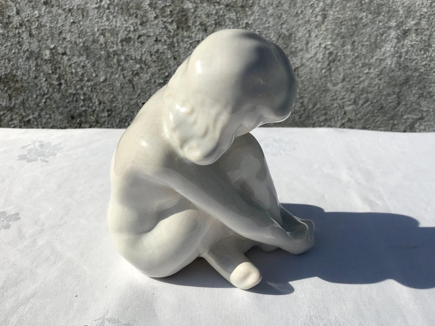 Bornholmsk Keramik, Søholm, Kvindefigur, 15cm høj, Danmark 764 *Pæn stand med lidt krakelering*
