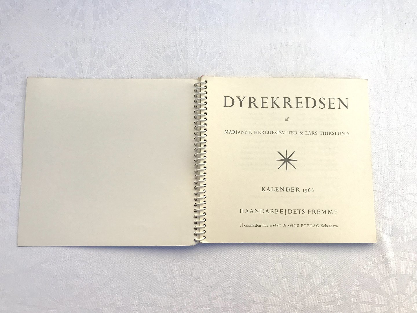 Håndarbejdets fremme, Årets korsstings kalender 1968, dyrekredsen, Design Marianne Herlufsdatter & Lars Thirslund *Pæn stand men med enkelte noter på kalenderbladene*