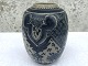 Patrick Nordström og Ellinor Selchau , Glaseret stentøjsvase rigt dekoreret i blå glasur, 16,8cm høj, 14cm i diameter, Fremstillet på eget værksted i Islev år 1925 *Pæn stand*