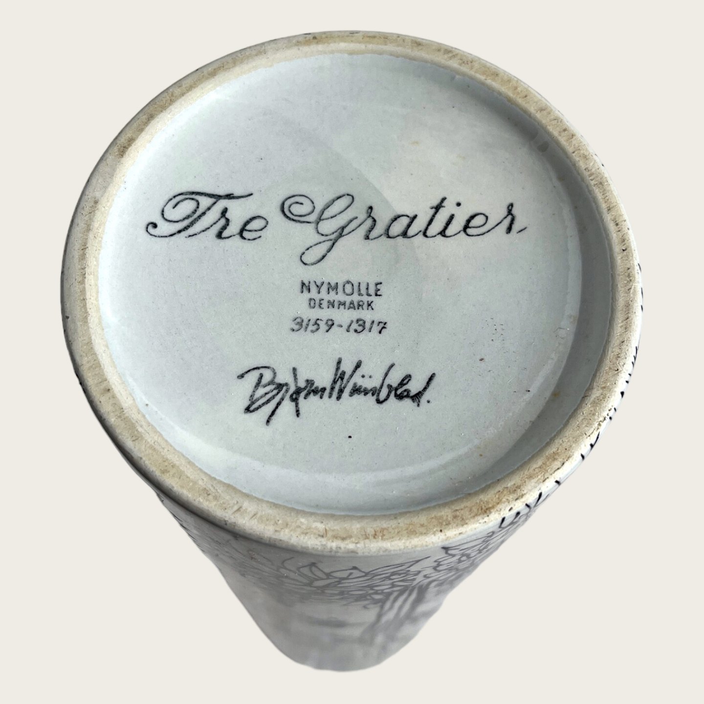 Bjørn Wiinblad, Nymølle, Vase, "Tre Gratier", 28,5cm høj, 9cm i diameter, Nr. 3159- 1317 *Pæn stand*