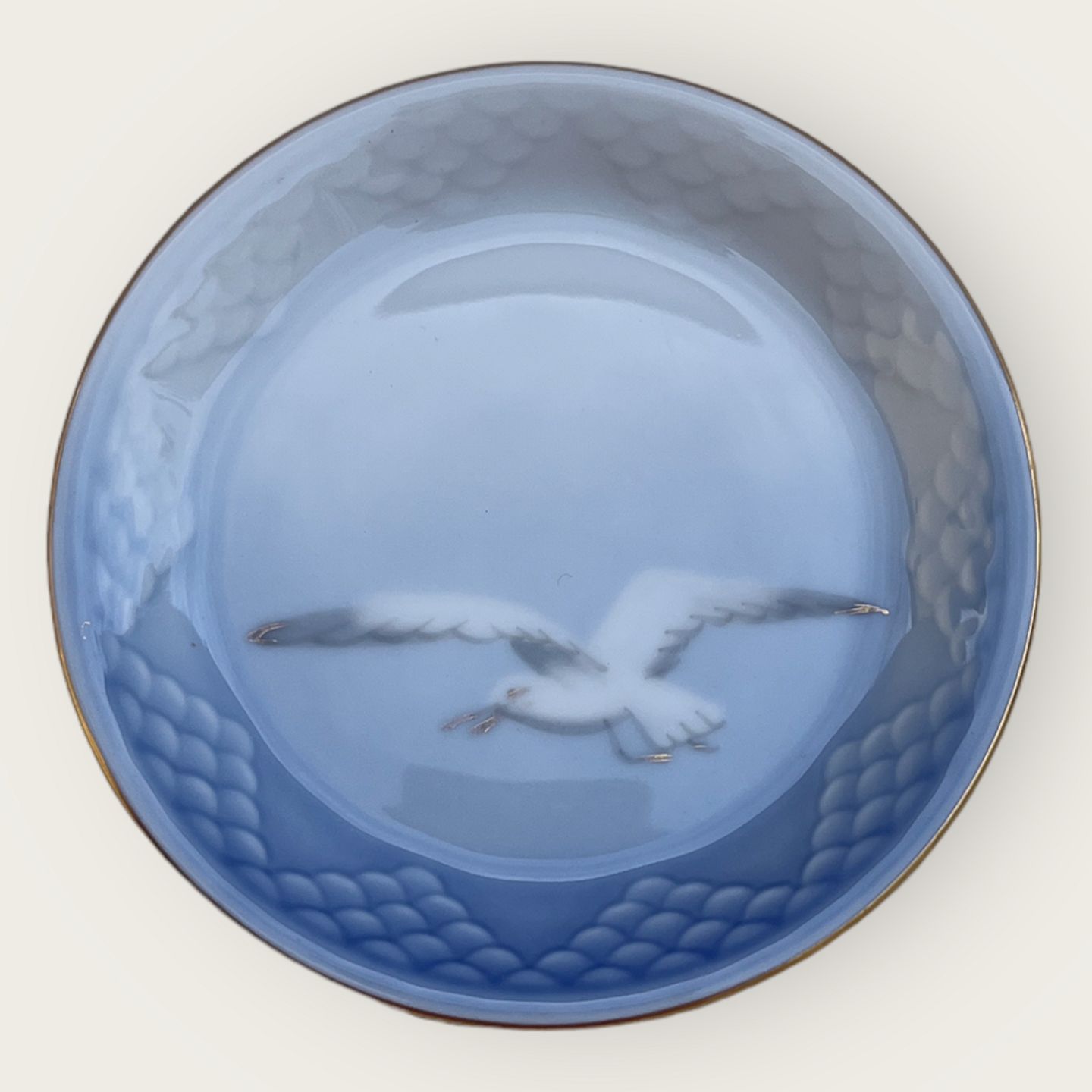 Bing & Grøndahl, Måge med guld, Asiet #332,#30, 10cm i diameter, Design Fanny Garde *Pæn stand*