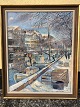 Lis Bjergsted (1922-1971), Oliemaleri på lærred, Christianshavns kanal, Mål med ramme: 84x69 cm