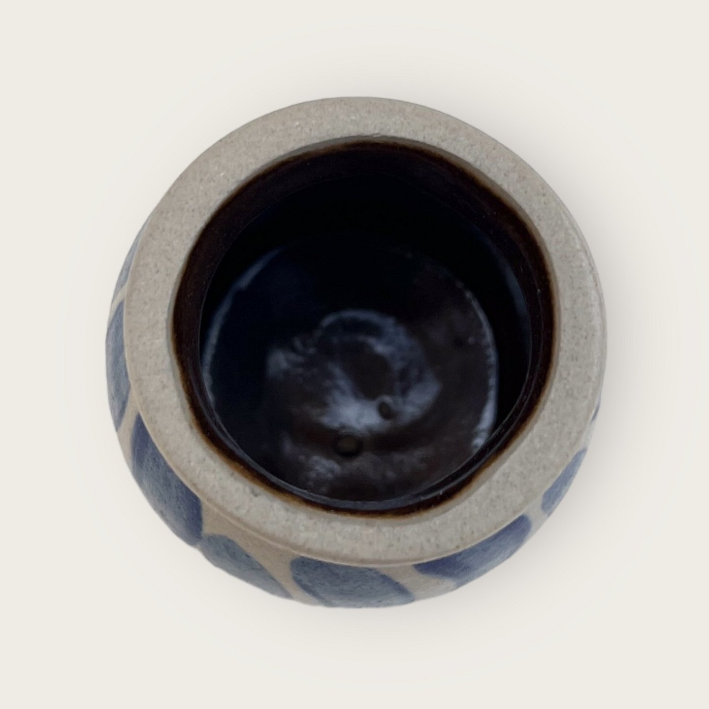 Vase / krukke, Stentøj; Med blåt bladmønster, 7,5cm høj, 5cm i diameter, Signeret: BBP *Perfekt stand*