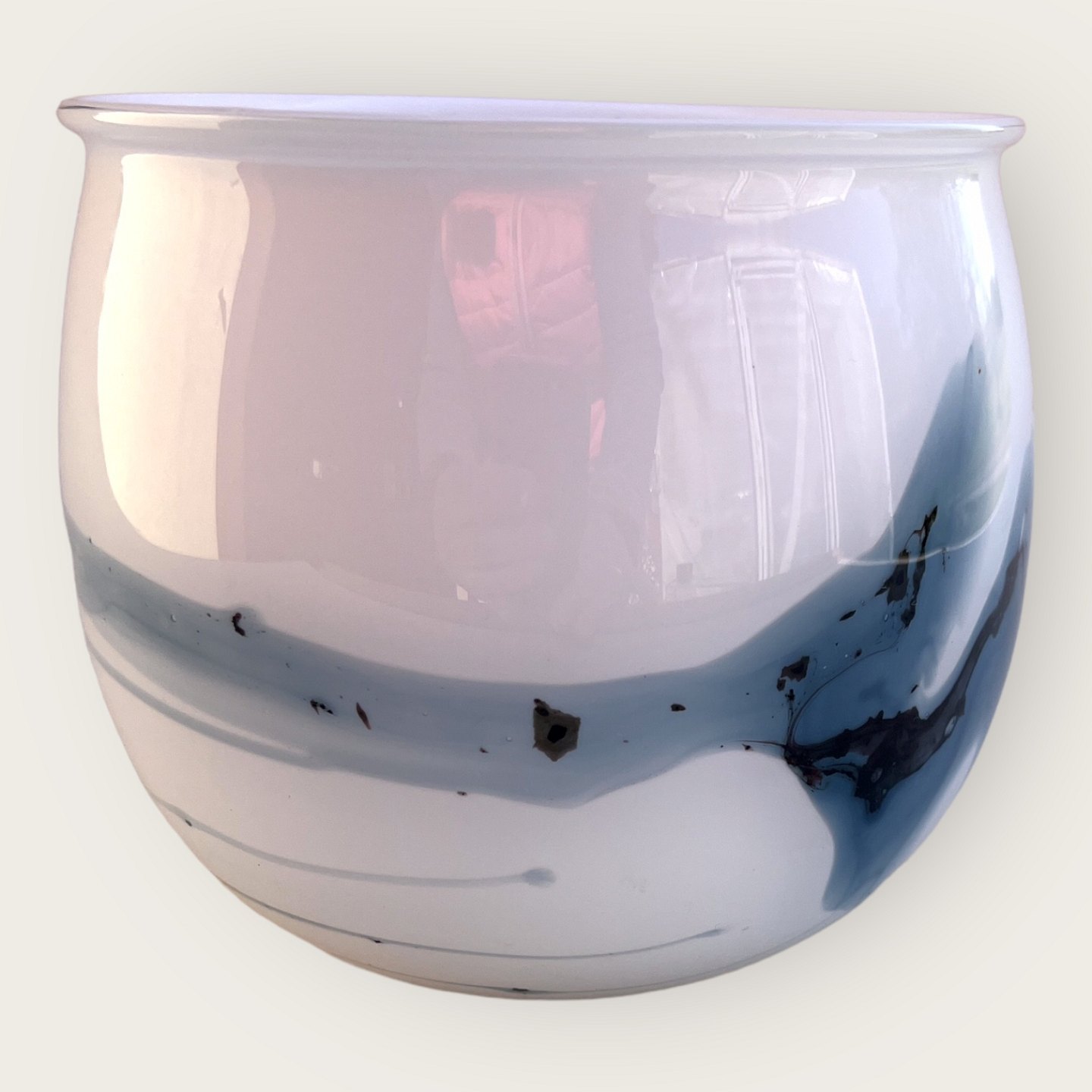 Holmegaard, Atlantis, Opalhvidt med blålig dekoration, 13cm i diameter, 11cm høj, Design Michael Bang *Perfekt stand*