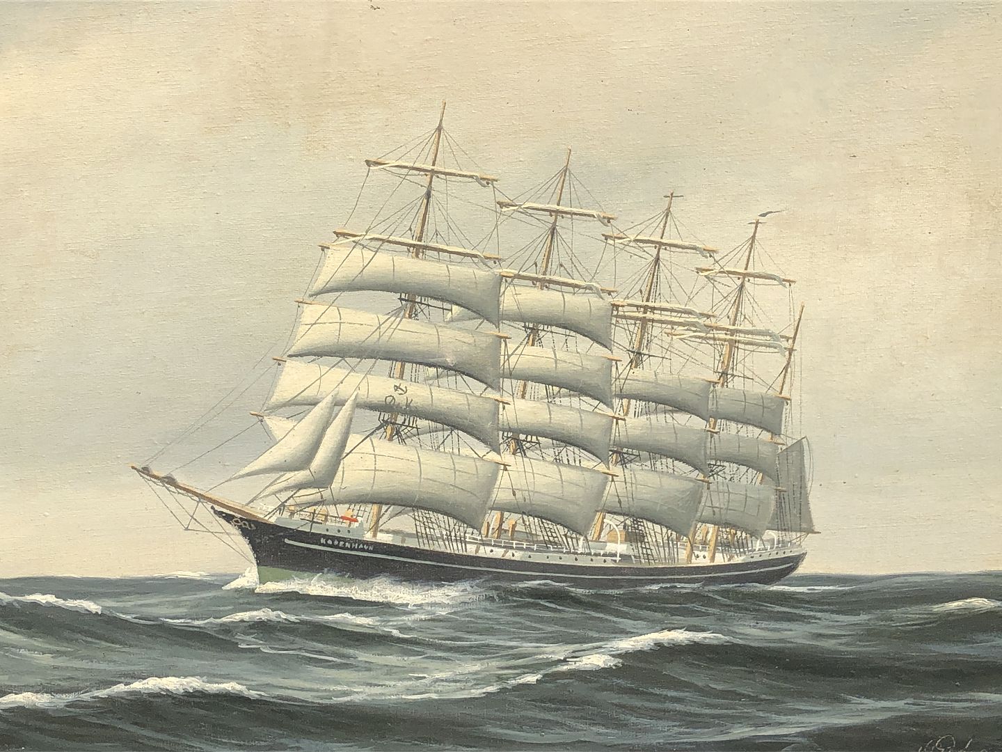 Olimaleri på lærred af skoleskibet København. Mål med ramme: 74x54cm