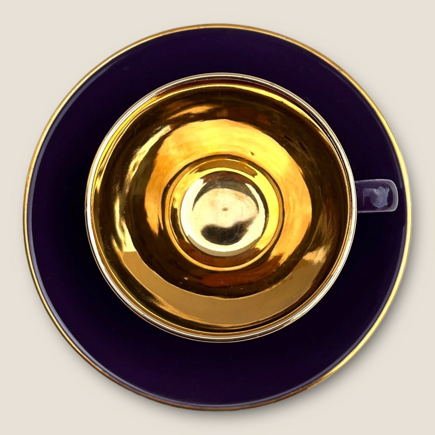 Royal Copenhagen, Aluminia, Confetti, Moccakop, Lilla, 7cm i diameter, 5,5cm høj, Underkop med guldkant *Pæn stand*