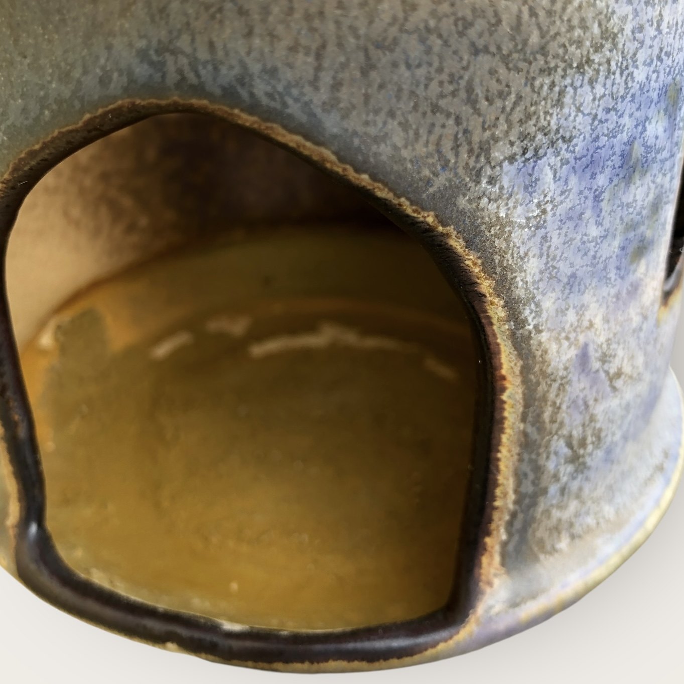 Søholm keramik lampe, af Joseph Simon, fremstår lidt rustik/ patineret indvendig i bunden (se foto), se også varenr. 584331 for den samme lampe i en helt anden glasur, Mål. diameter ca. 15 cm, Højde ca. 24 cm