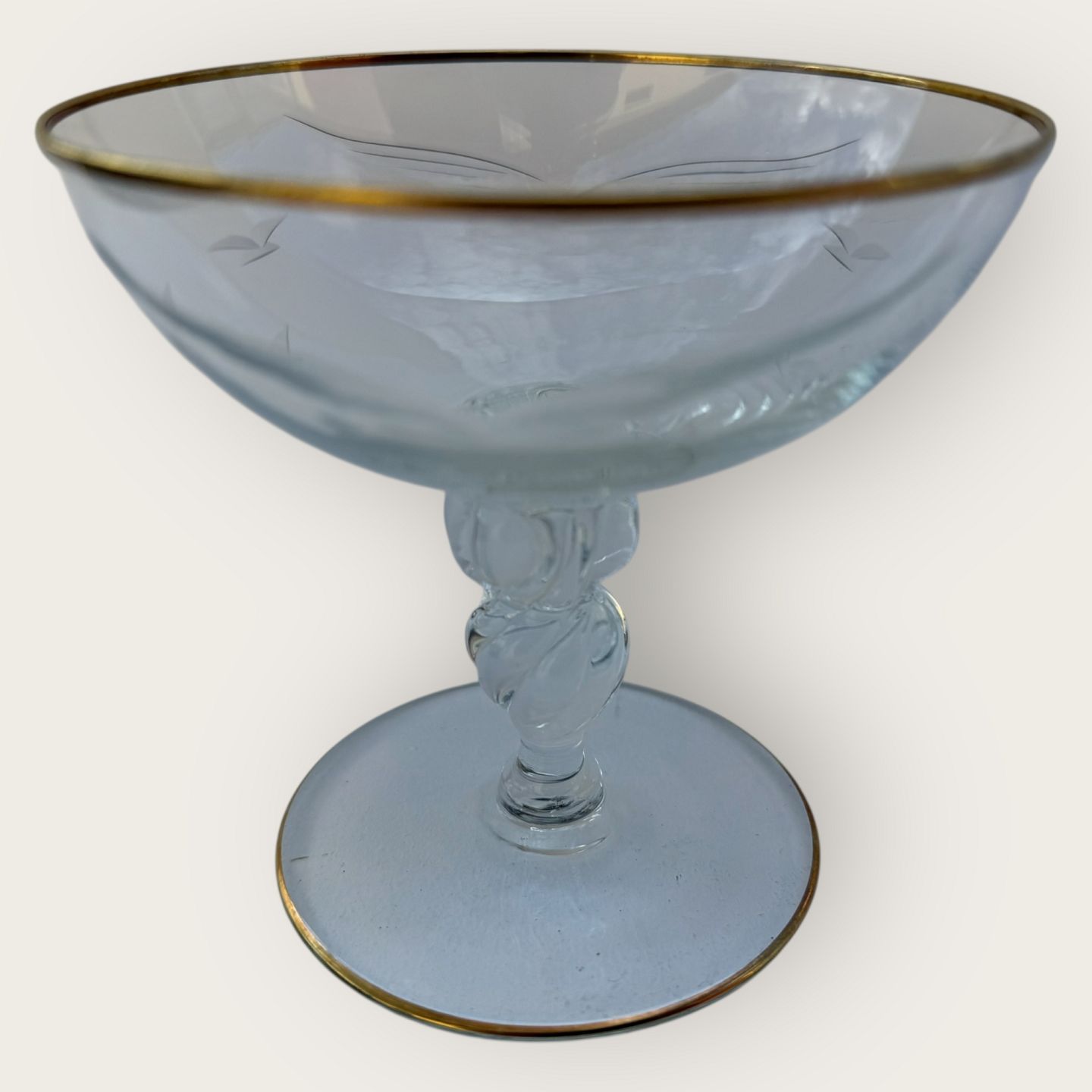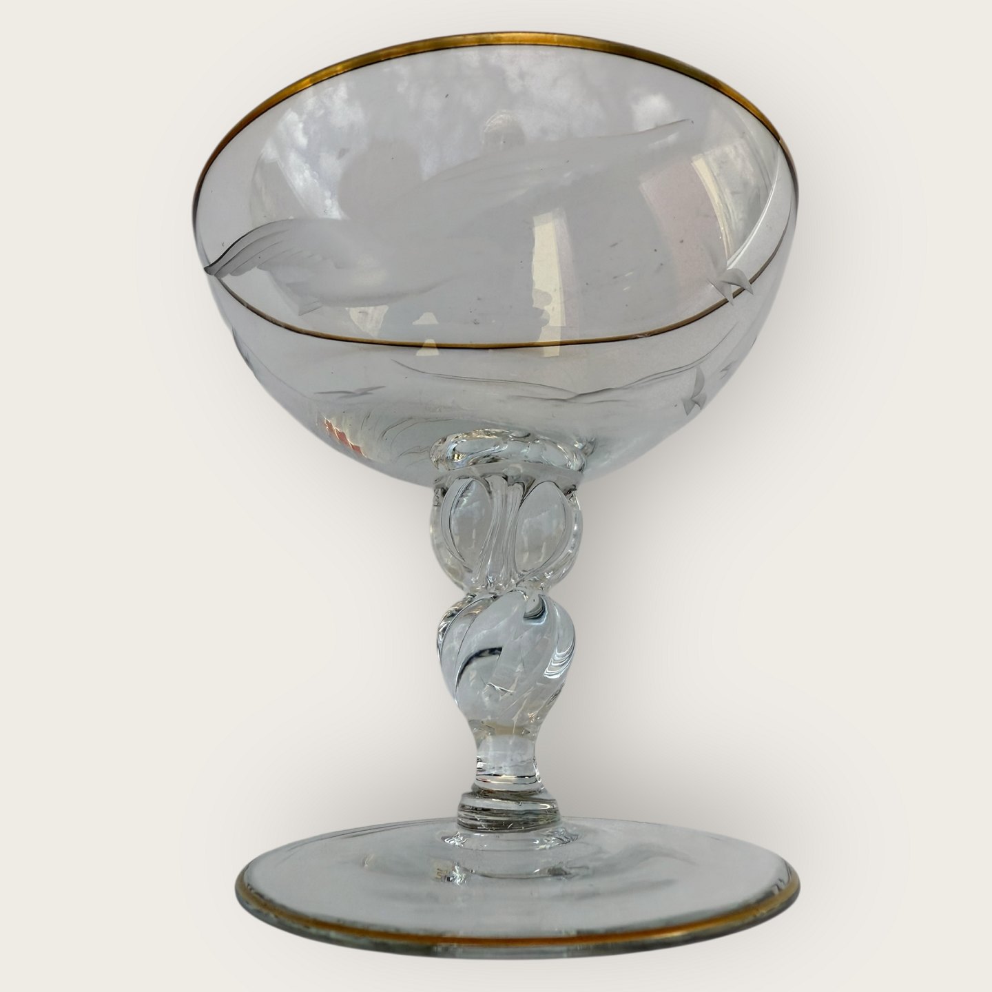 Lyngby Glas, Måge Krystalglas med slibninger og guldkant, Champagne, 10cm høj, 10cm i diameter *Perfekt stand*