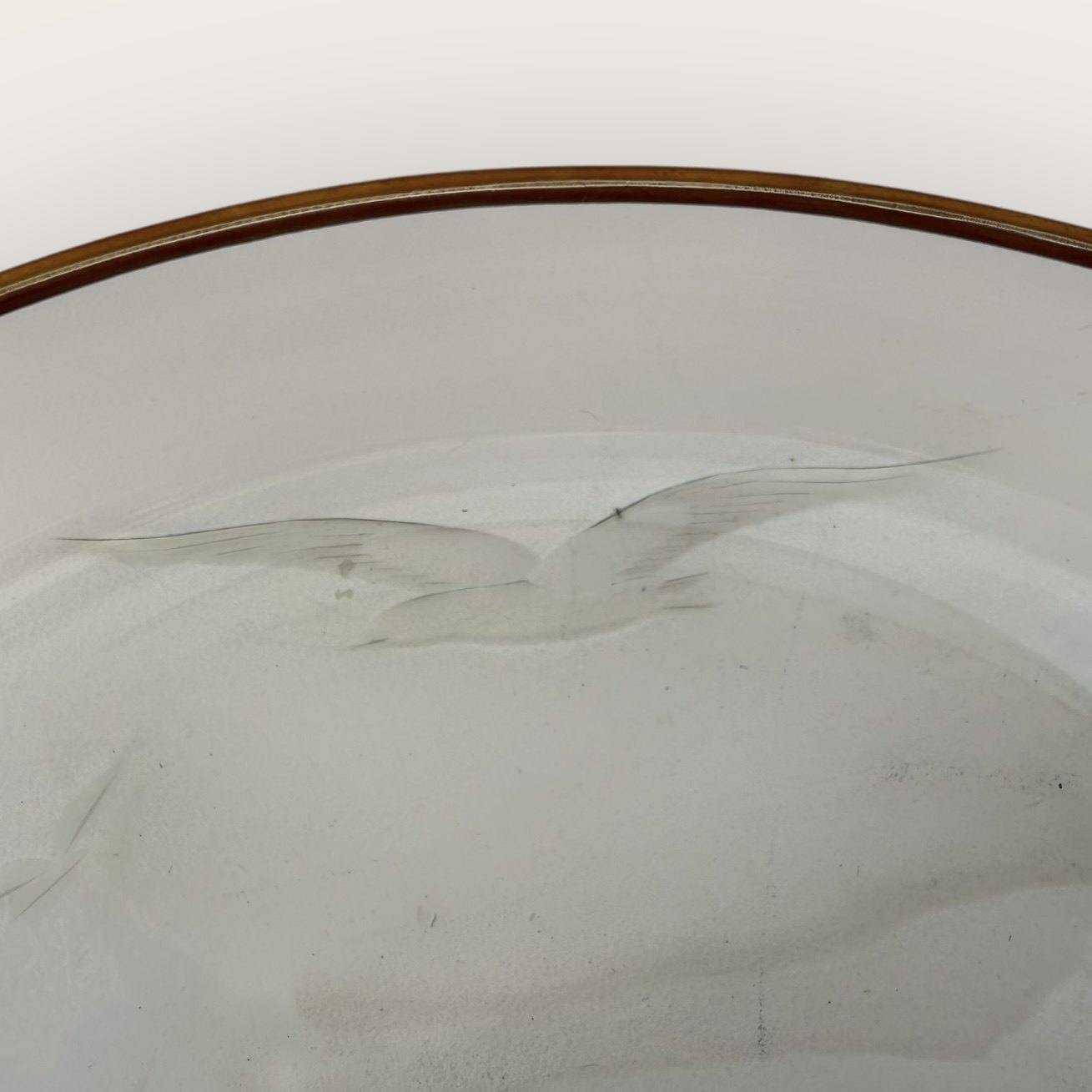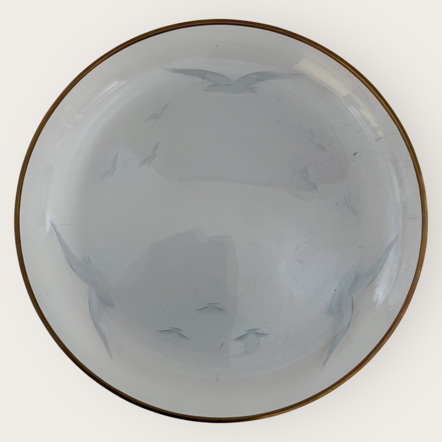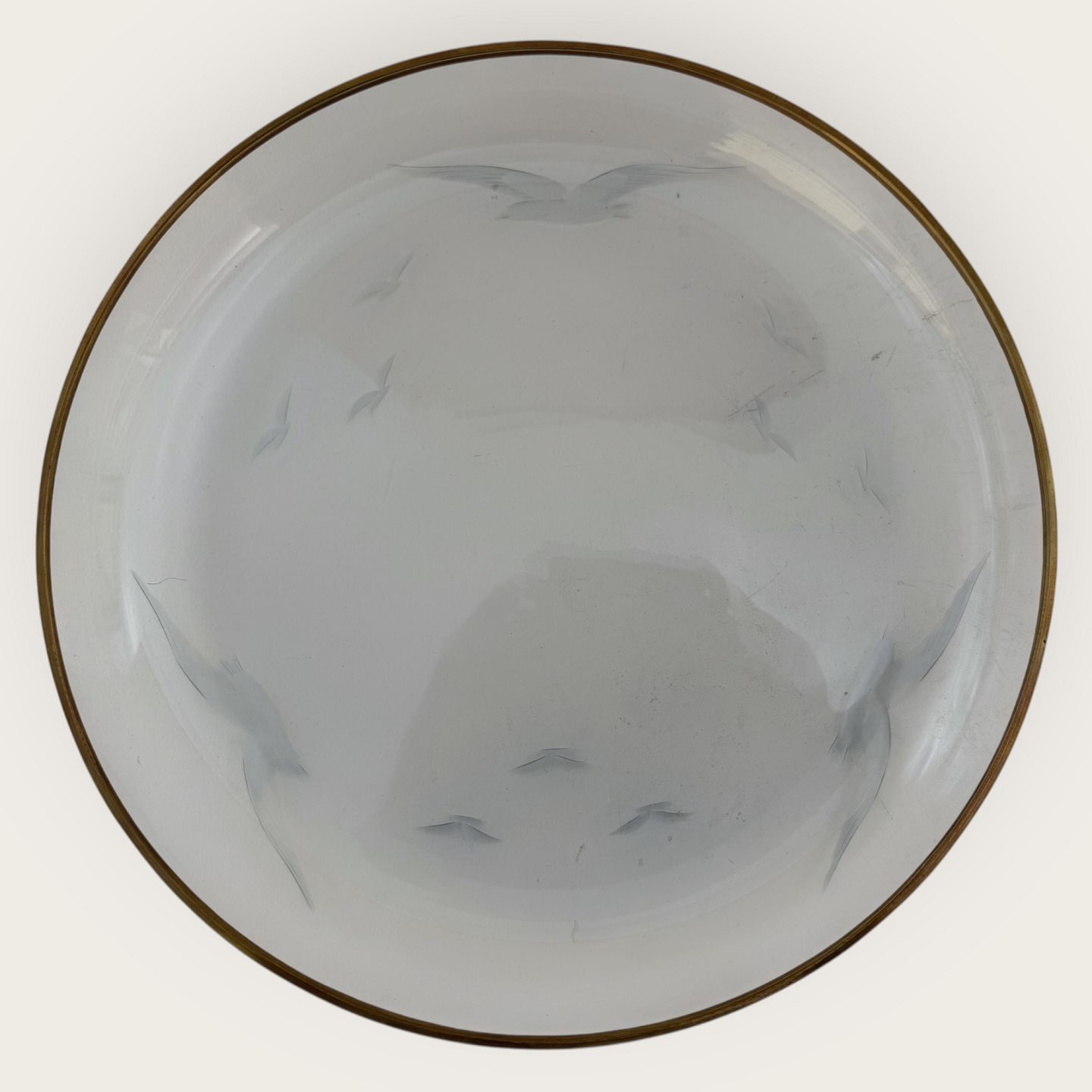 Lyngby Glas, Serverings fad, Måge Krystalglas med slibninger og guldkant, 28,8cm i diameter *Pæn stand*