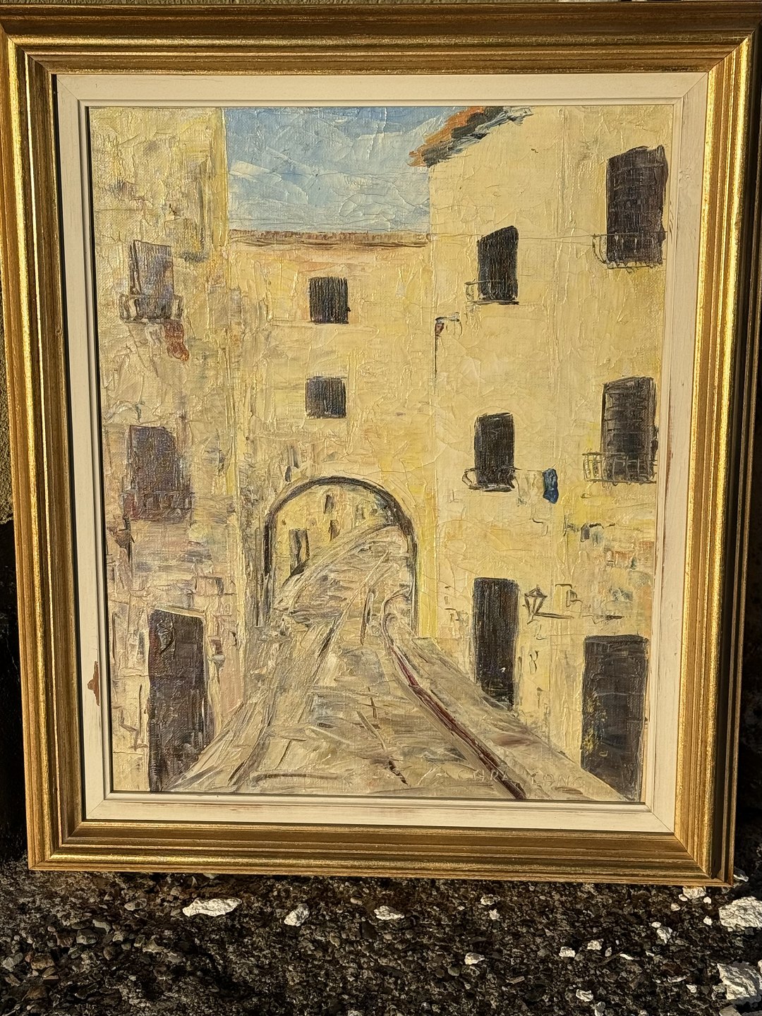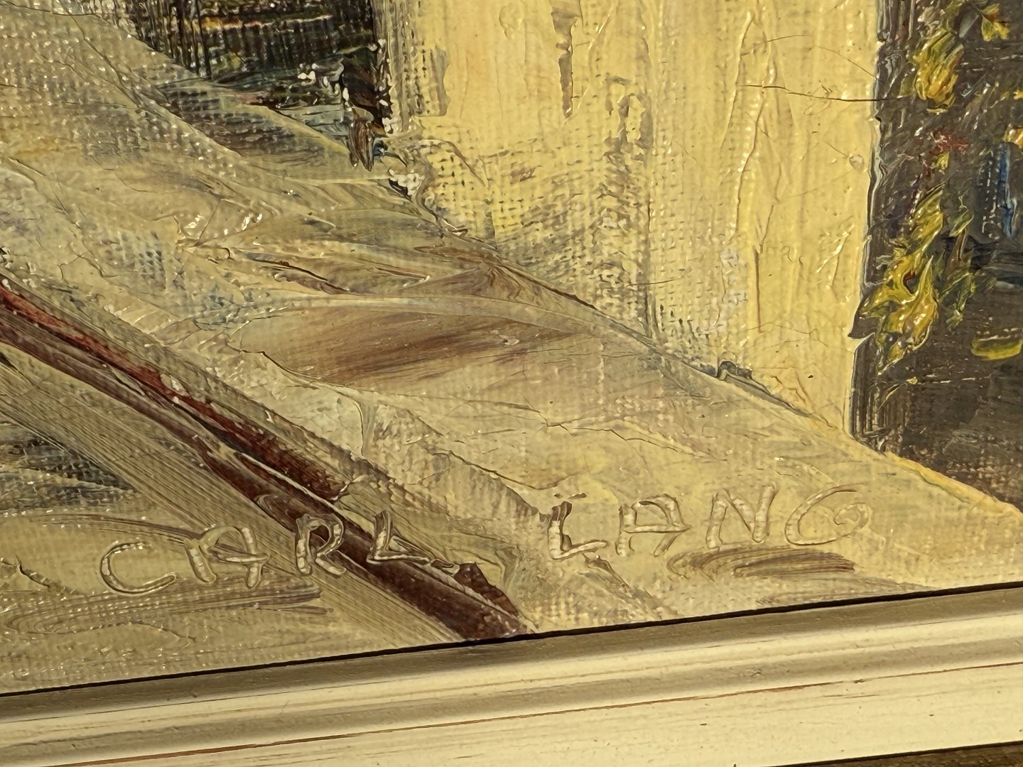 Carl Lang, Sydlandsk bymotiv, Olimaleri på lærred, Mål med ramme 51x43cm