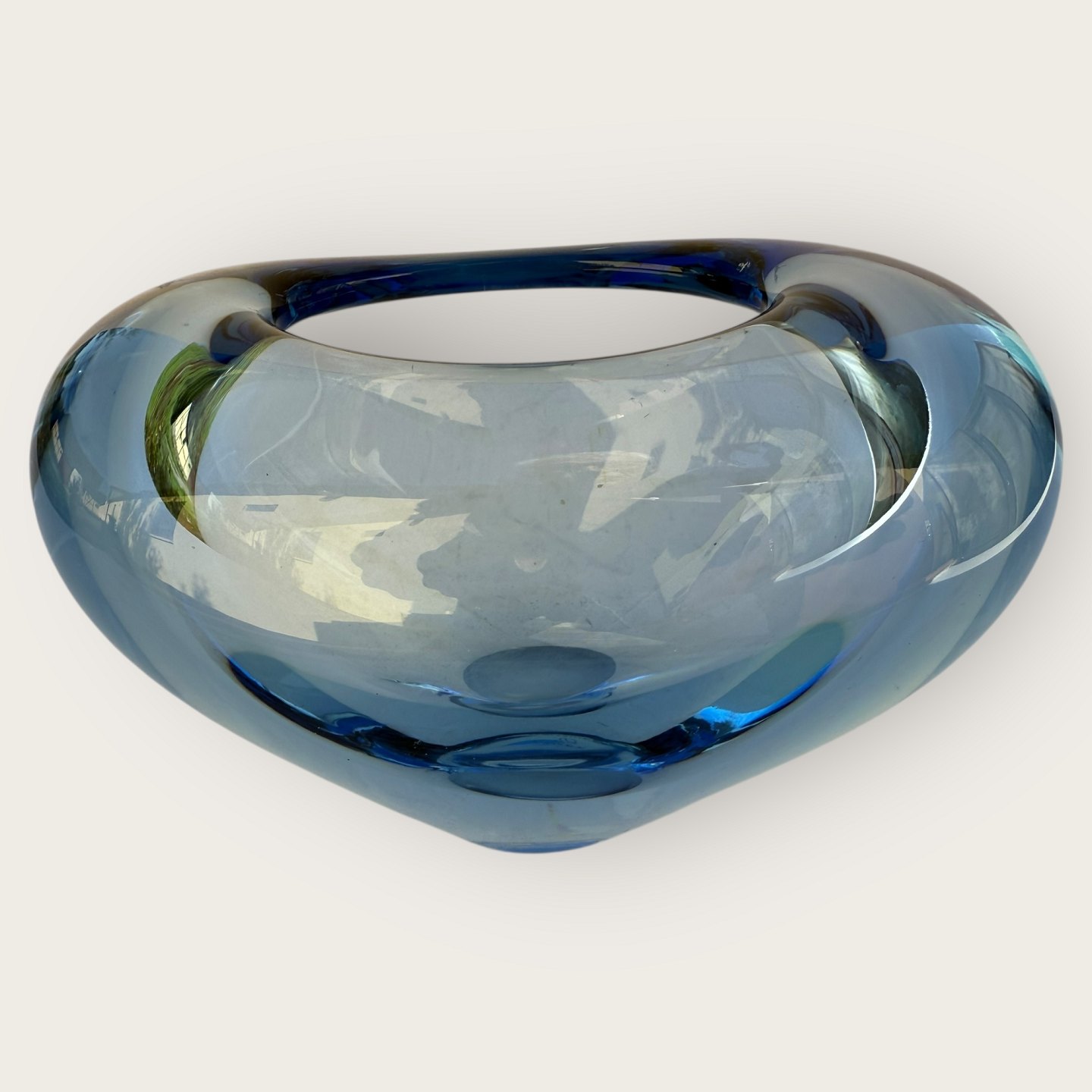 Holmegaard, menuet, Hjertevase, Lys blå, # 220737, 15cm bred, 10cm høj, Design Per Lütken *Pæn stand med små brugsspor*