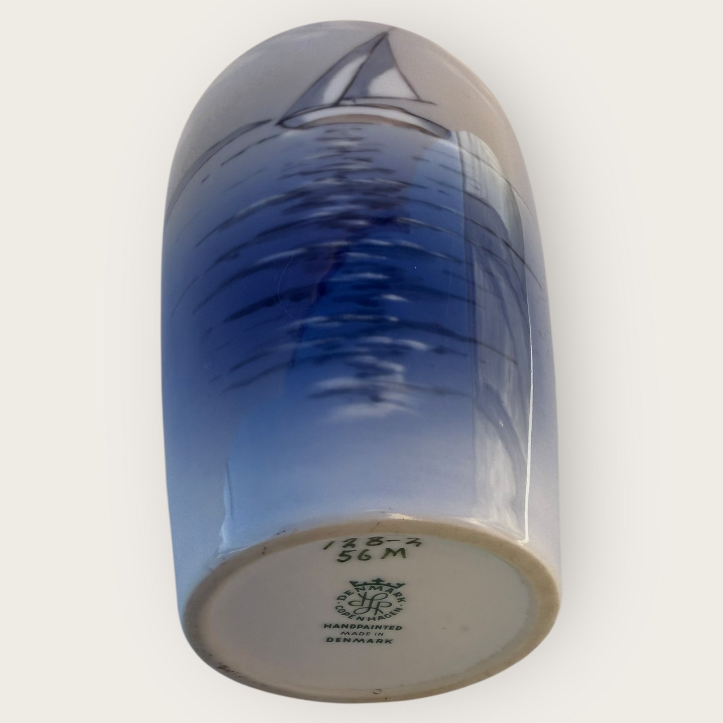 Lyngby vase med sejlskib, #128-2, højde 17,5cm, fin stand