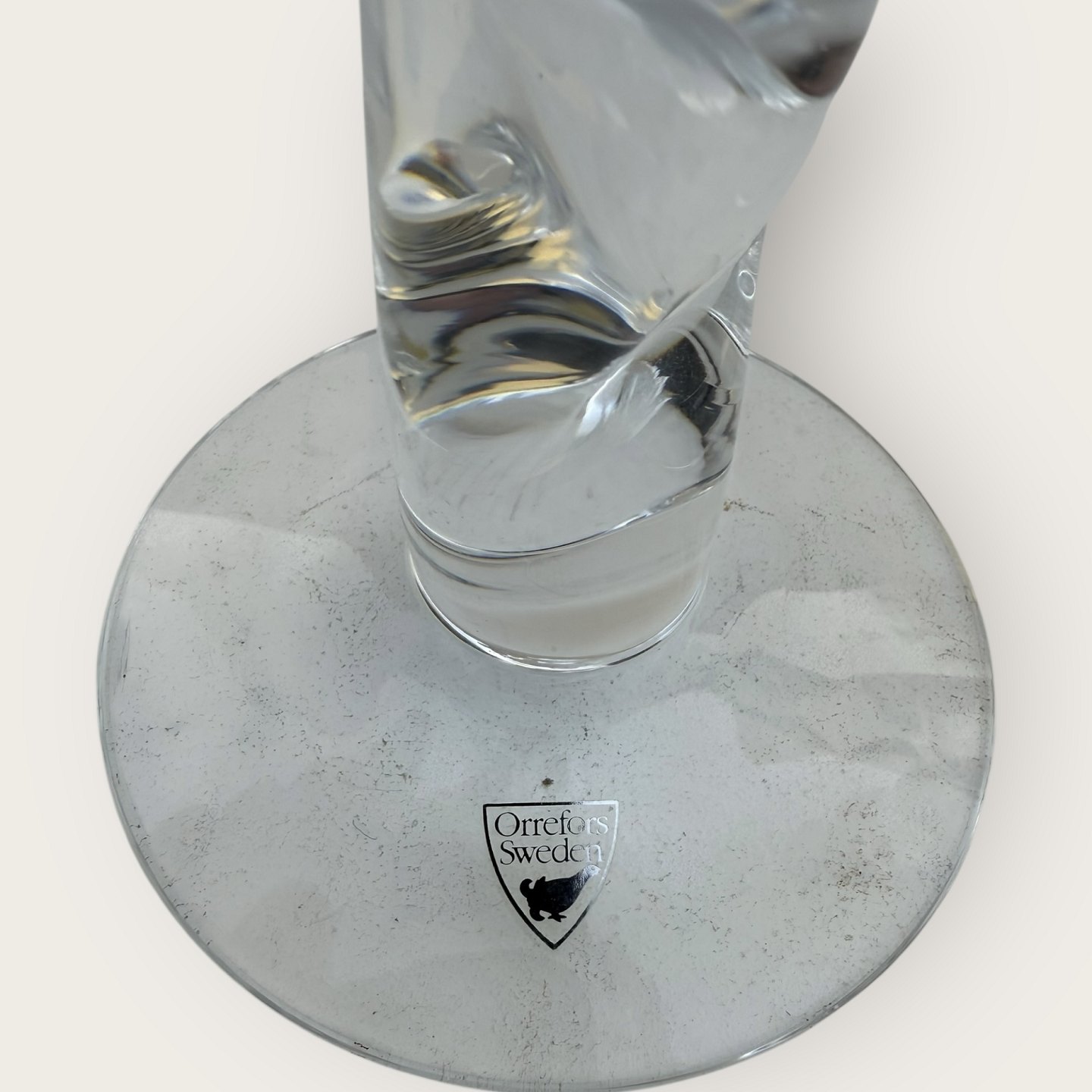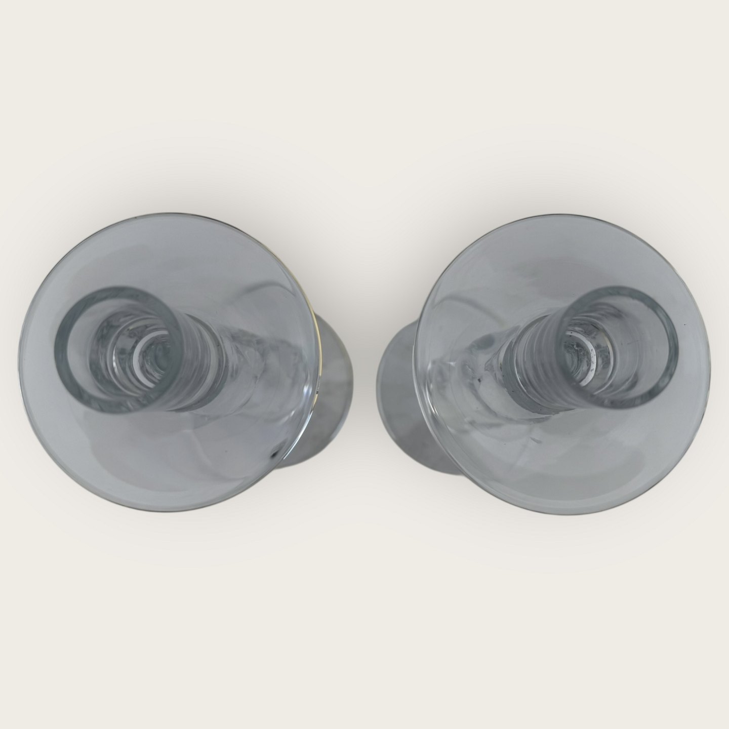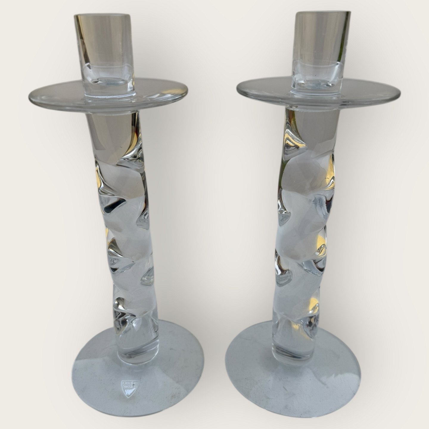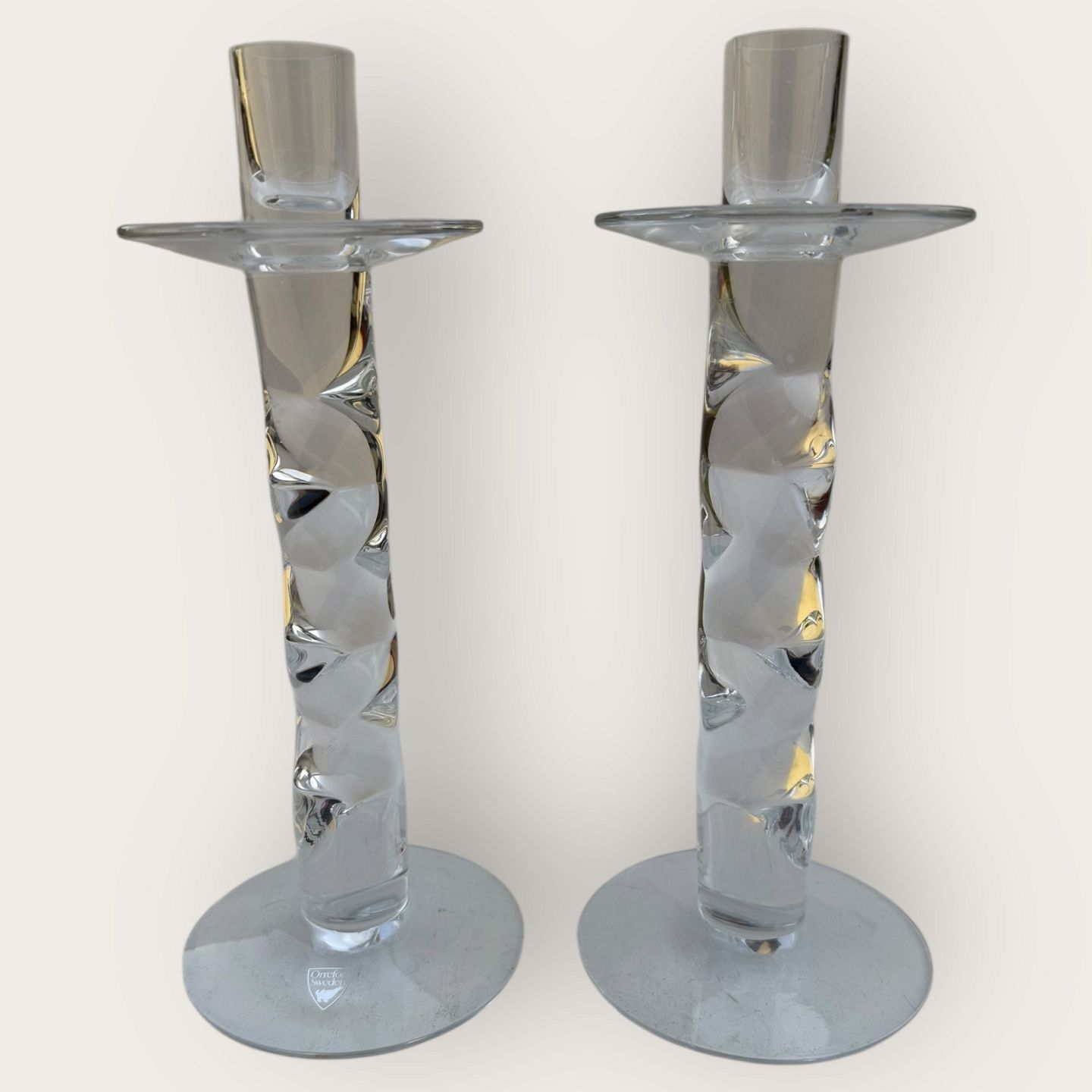 Orrefors, Sverige, et sæt lysestager i glas, højde 24cm bund diameter 10cm * flot stand*