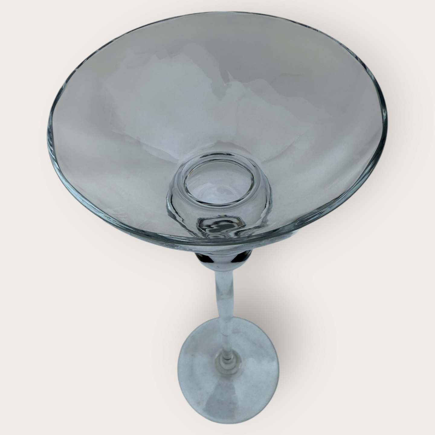 Høj glas lysestage, 35cm høj, diameter øverst 12cm, fin stand