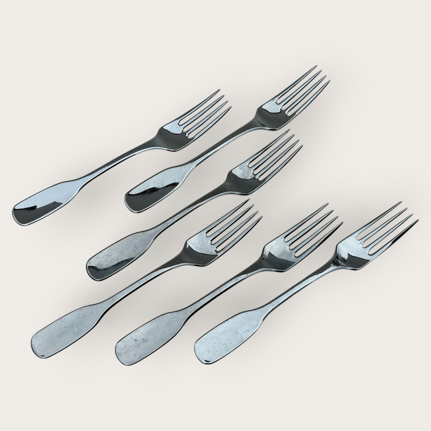 Hans Hansen sølvsmed, 6 gafler i rustfrit stål, 18cm lange *pæn brugt stand*
