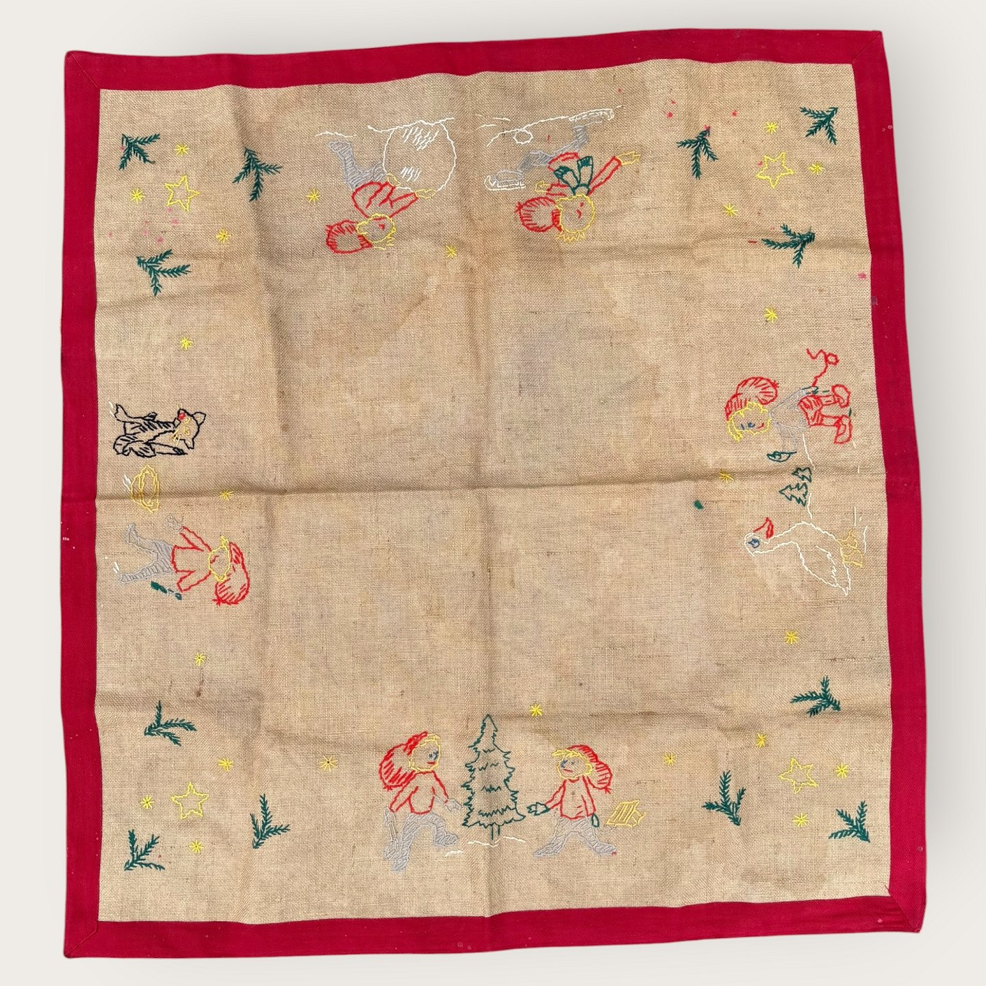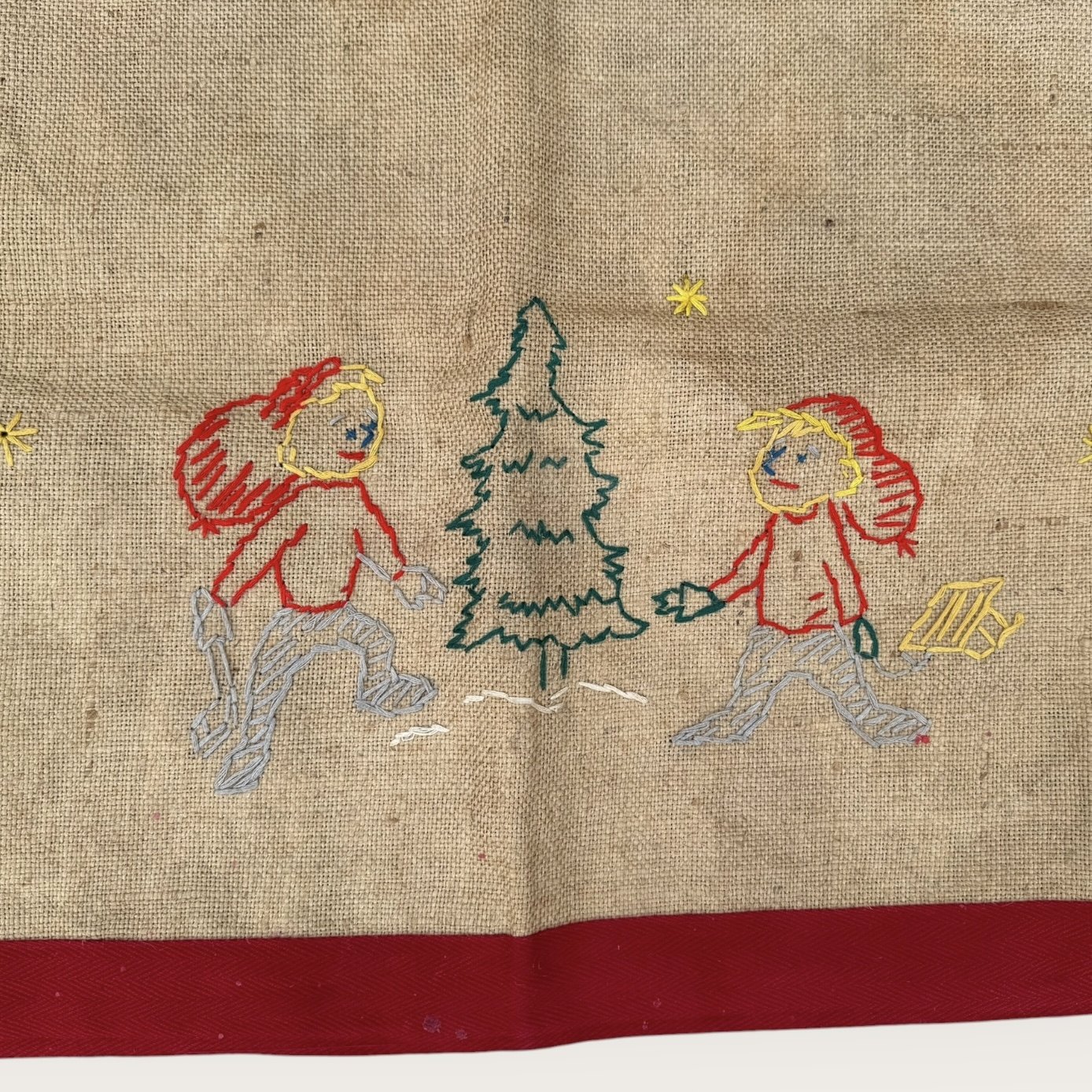 Juletræstæppe, Broderi med julemotiv, 100cm / 95cm *Pænt patineret stand*