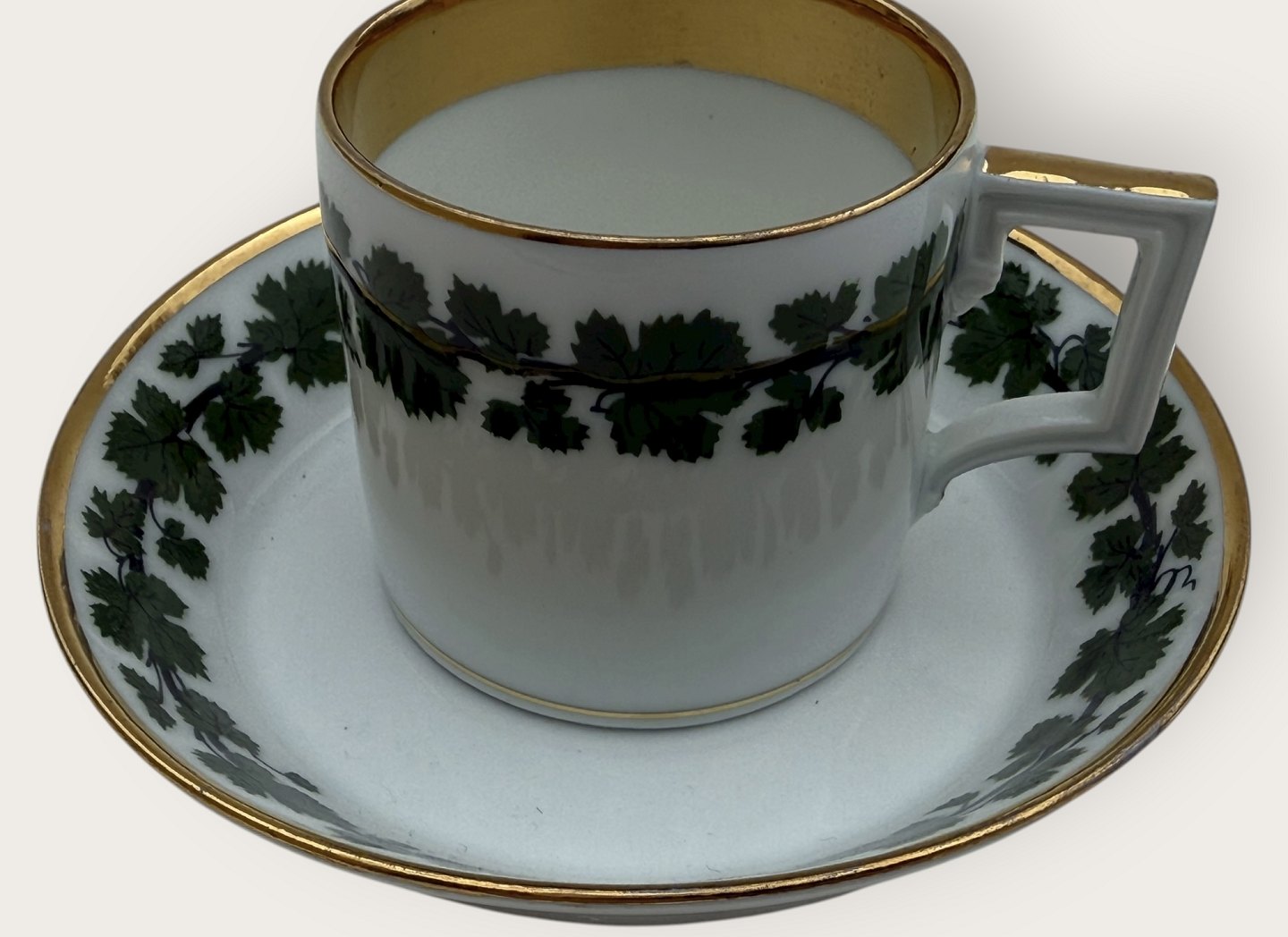 Lille kaffekop med vinløv og guld