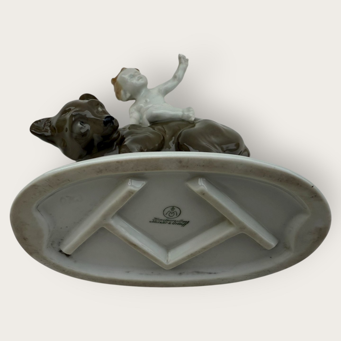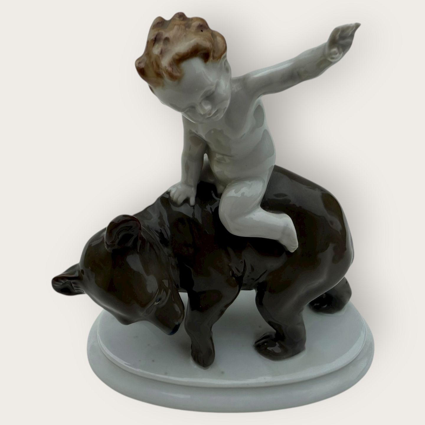 Metzler & Ortloff, Dreng på bjørn, ca. 12x14,5cm *fin stand*