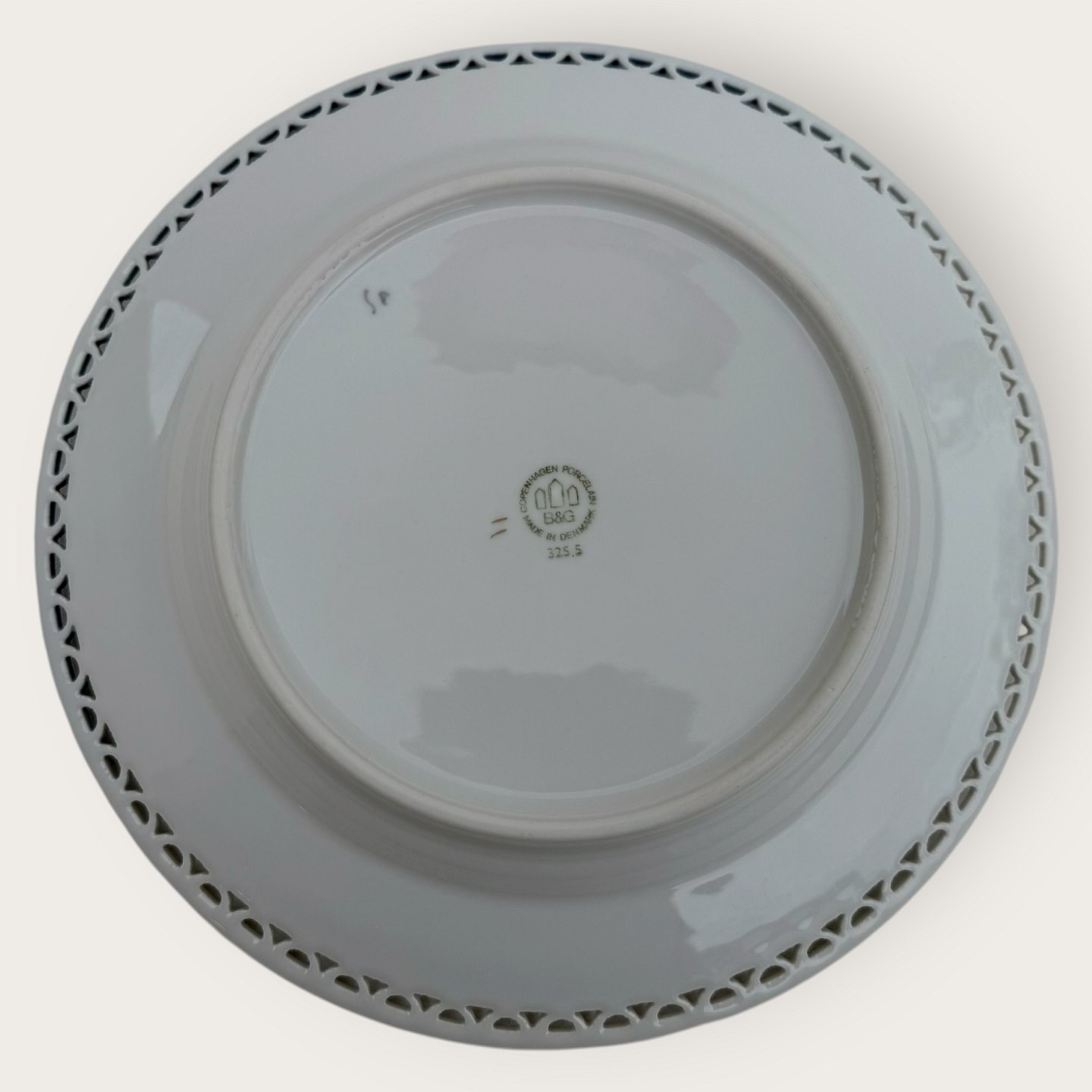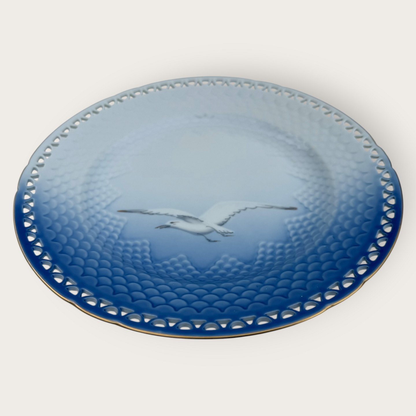 Bing & Grondahl, Möwe mit Gold, Speiseteller mit durchbrochenem Rand Nr. 325.5, 25 cm Durchmesser, Design Fanny Garde *Perfekter Zustand*