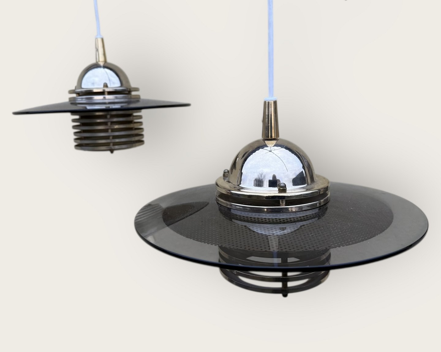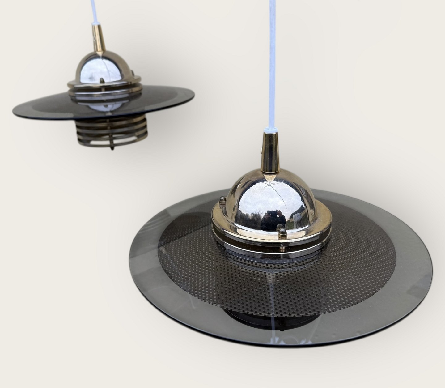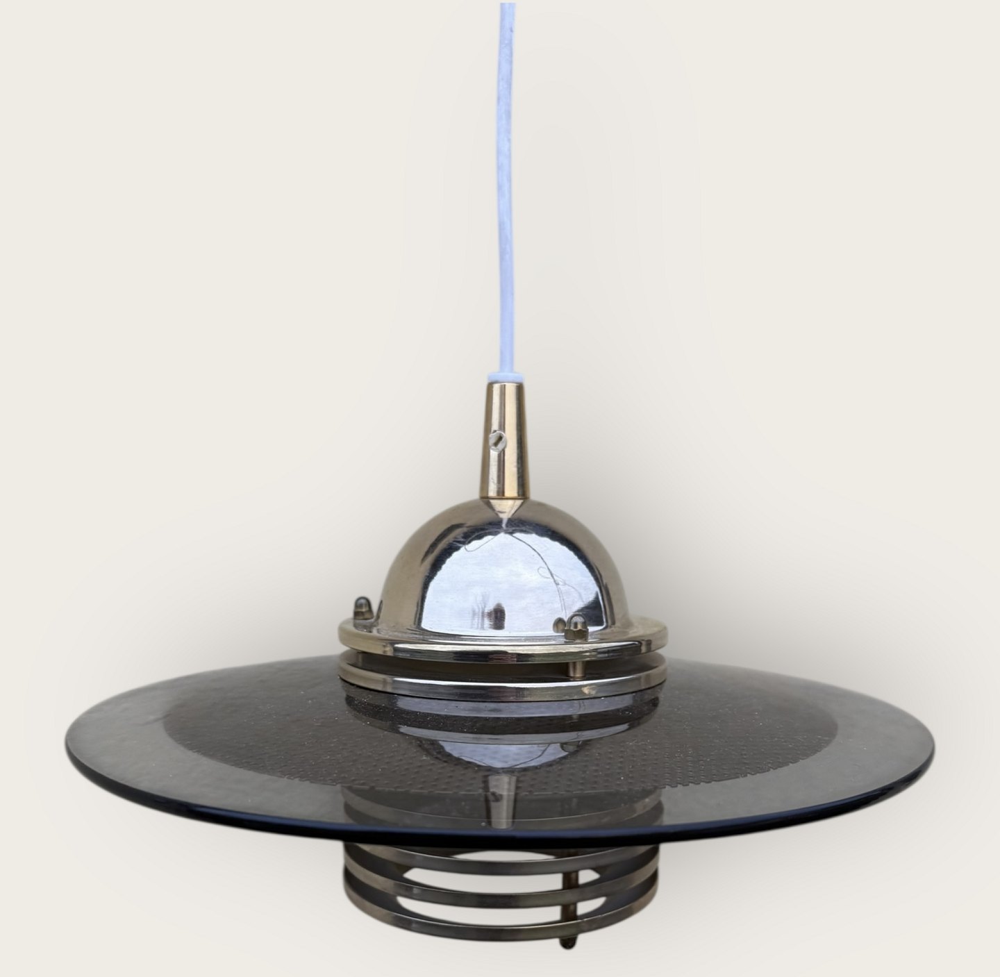 Jan-Eskild Eskildsson, Belid, Sweden, Reflector Ceiling Lamp in smoked glass and brass, Diameter 29cm *good condition*