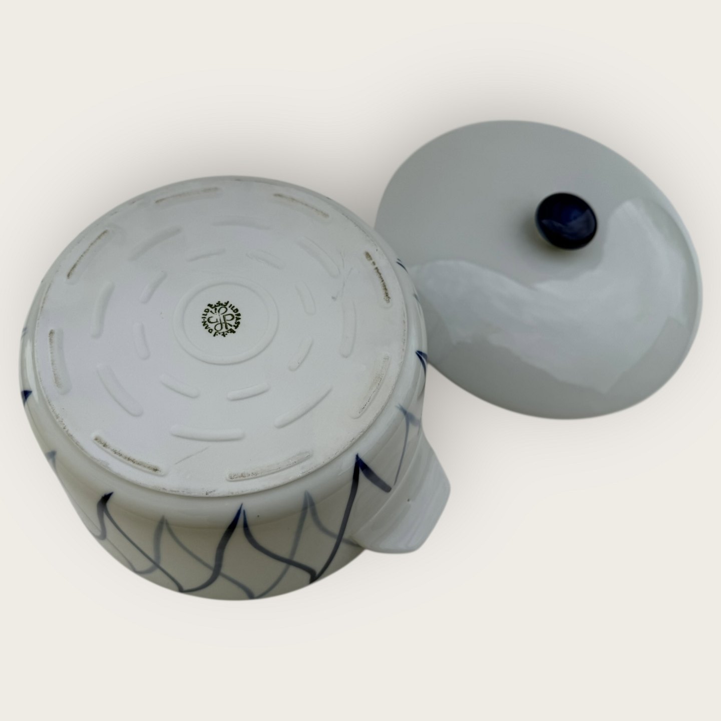 Lyngby, Danild 40, Blå flamme, Gryde med låg og hanke, diameter 20,5cm, 25 cm bred med hanke, 10,5cm høj, 1.sortering, Design Axel Brüel & Egon Mortensen *Pæn stand*