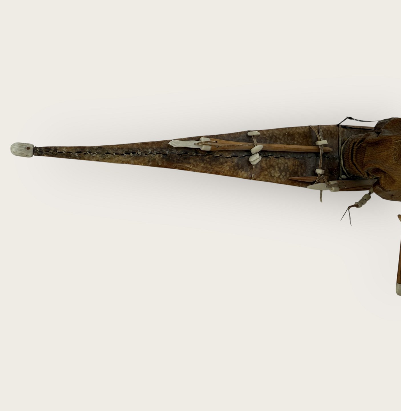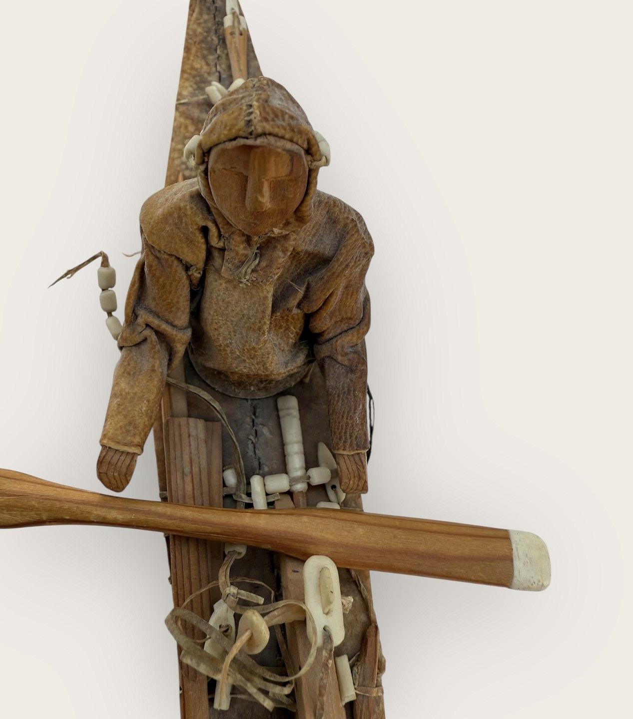 Grønland, stor kajakmodel i træ, ben og skind, 41cm lang *virkelig flot stand*