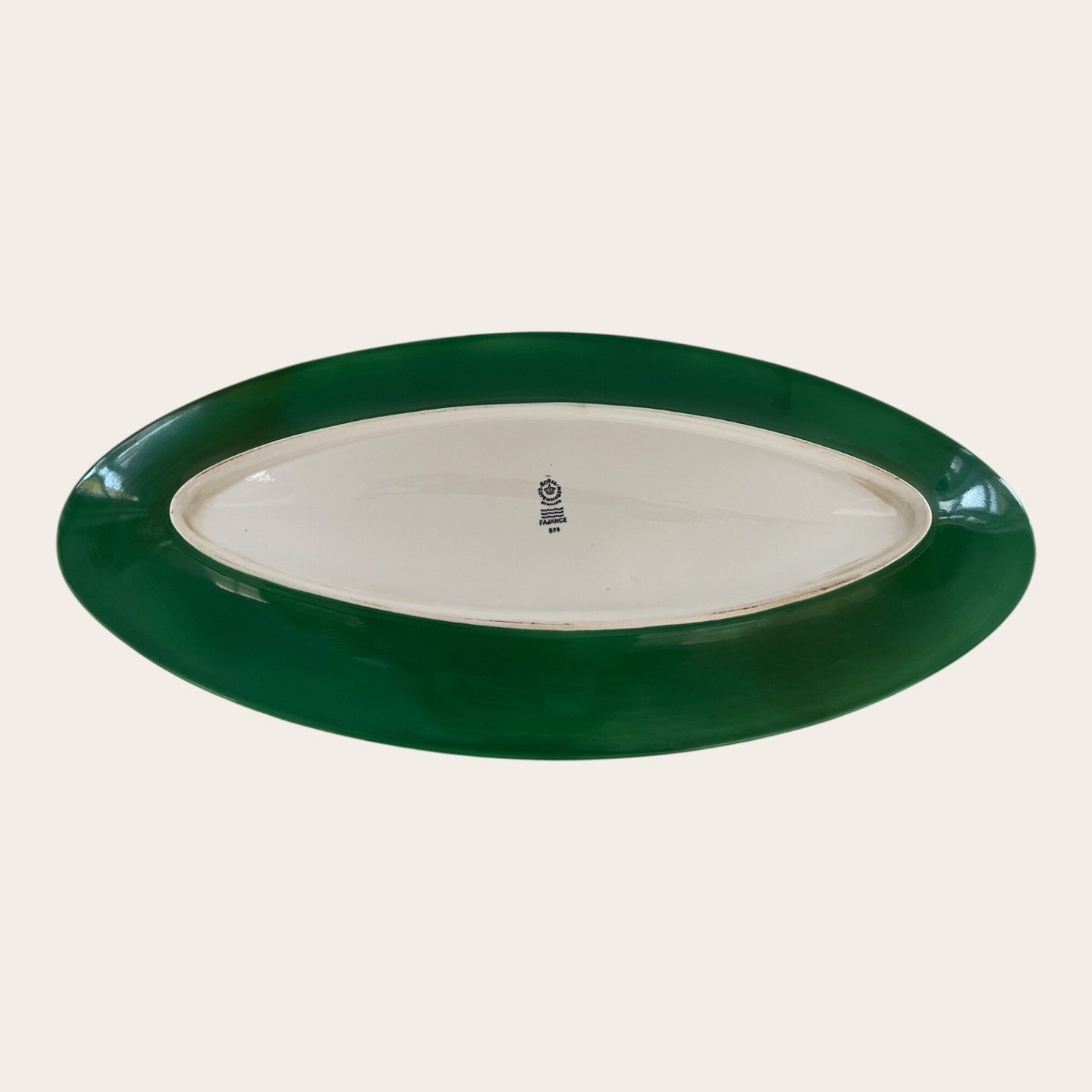 Royal Copenhagen, Aluminia, Ursula, Stort fad, Grøn/ hvid #375, 1. sortering, 57,5cm lang, 26cm bred, Design Ursula Munch Petersen *Pæn stand med lettere brugsspor*