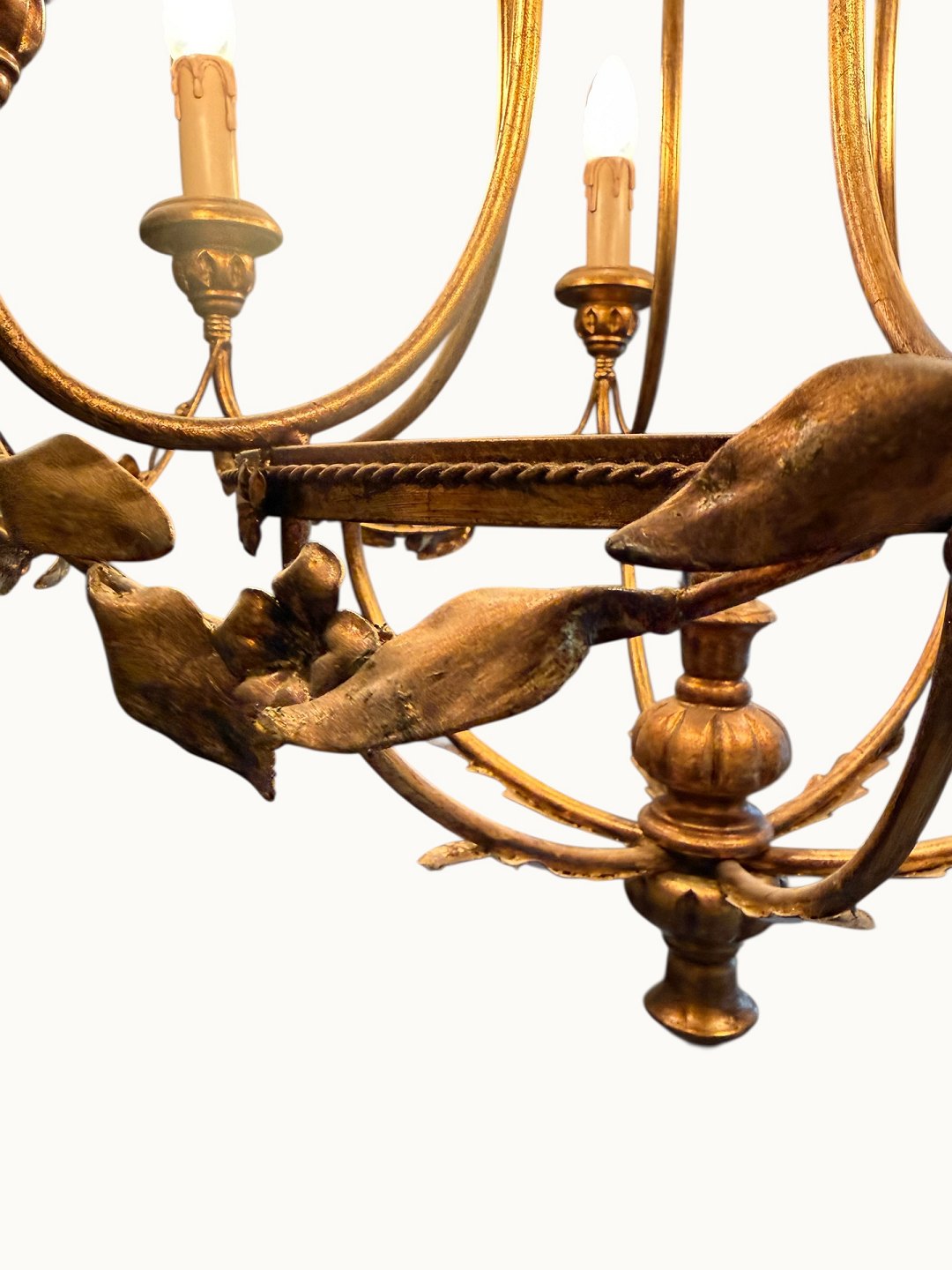 Burformet metal og træ lysekrone til elektricitet i Louis XVI stil, diameter ca. 60cm *fin og funktionsdygtig stand*