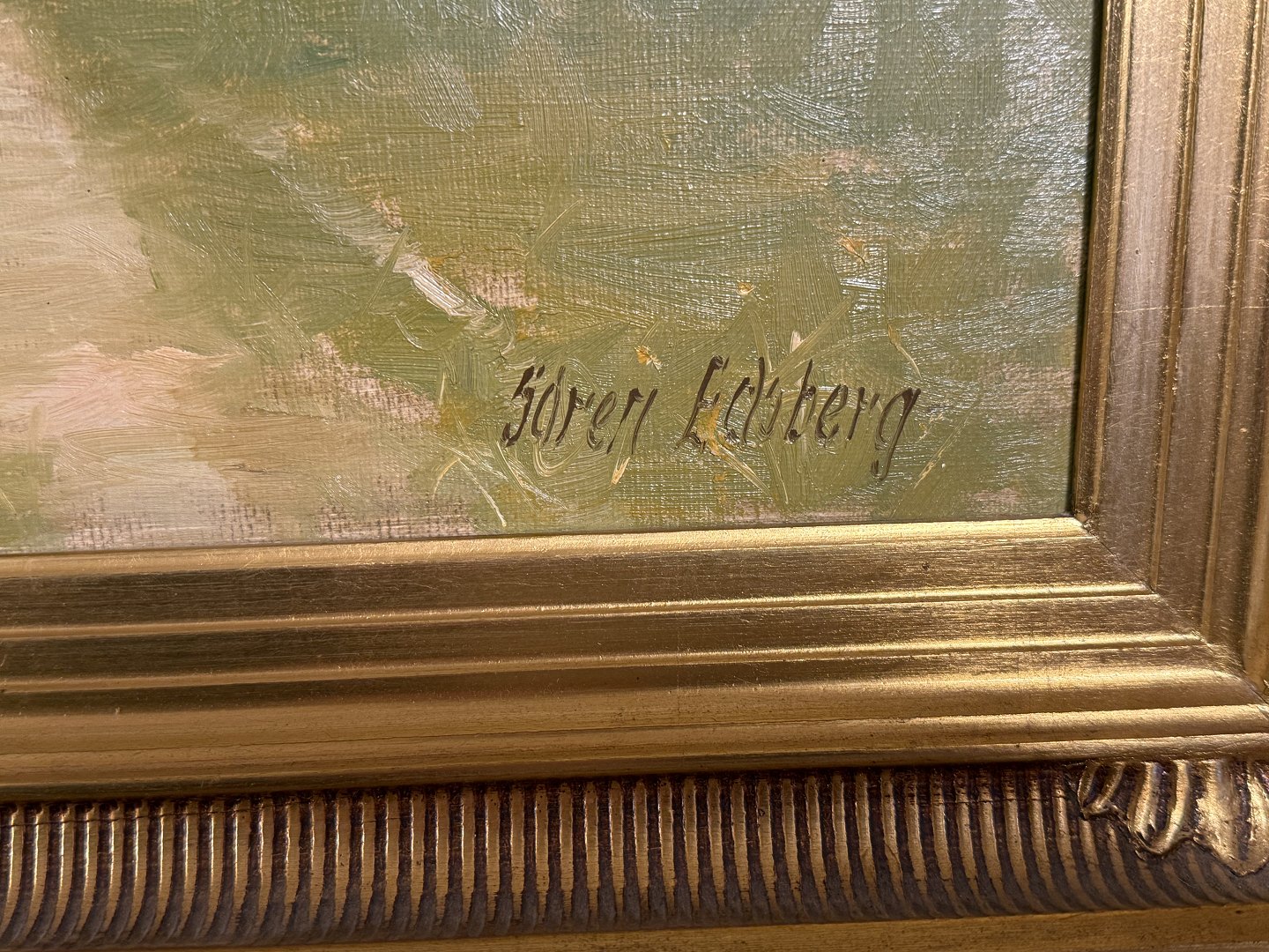 Søren Edsberg (f. 1945 ), Oliemaleri på lærred med motiv fra landet, Mål med ramme: 53x43cm *Pæn stand*
