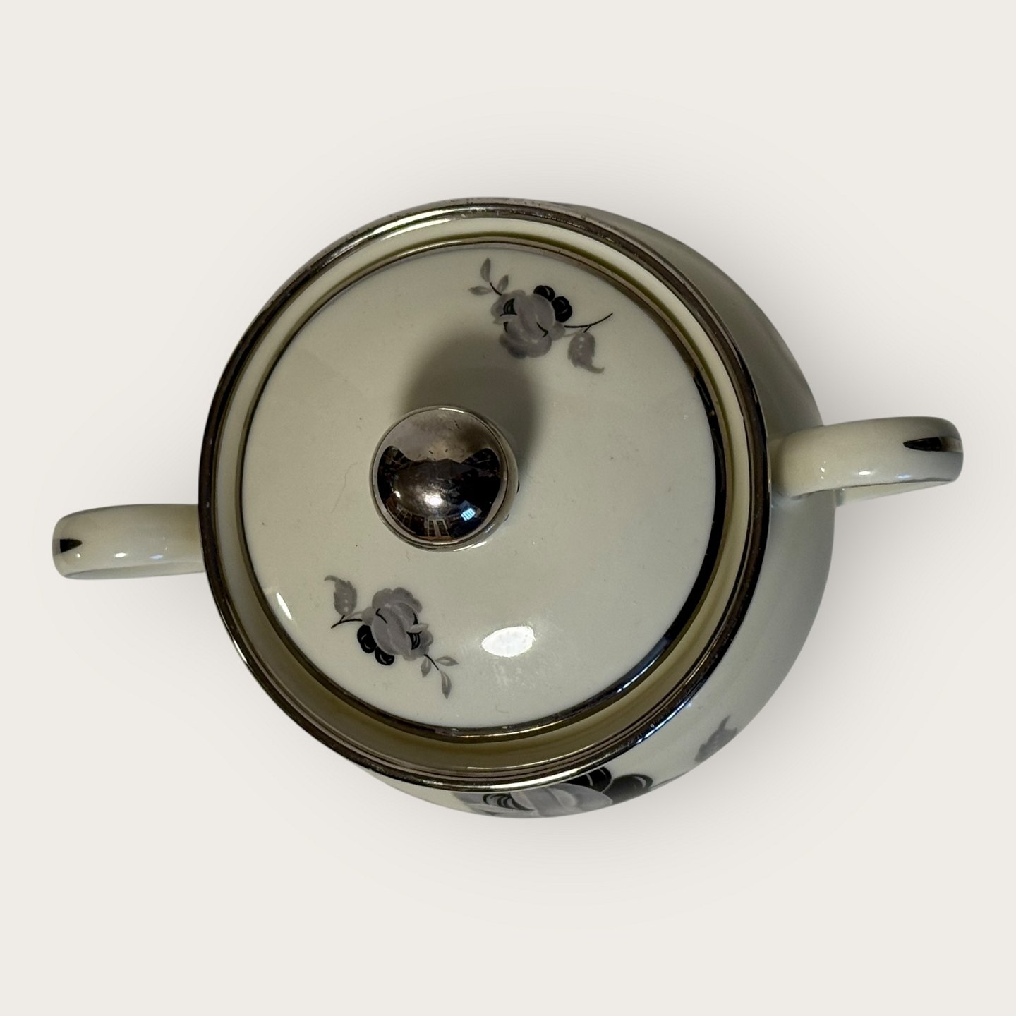 Sort rose, med Plantin kant, KPM, Lyngby, Sukker skål, Mål ca. 16x11x11cm *Pæn stand*