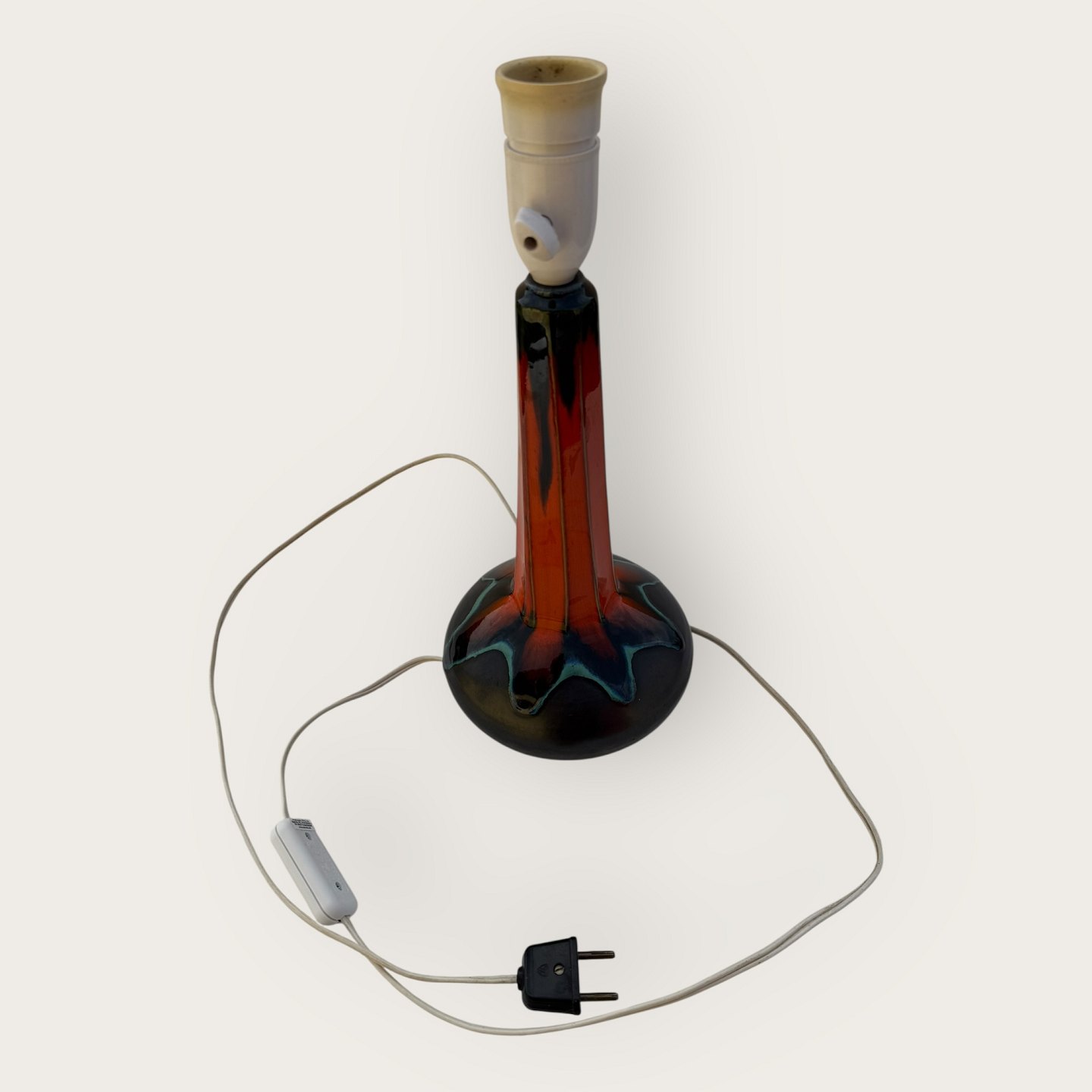 Ernst Faxe, retro bordlampe med kraftig orange glasur, ikke signeret, højde med fatning ca. 36cm *Fin stand*