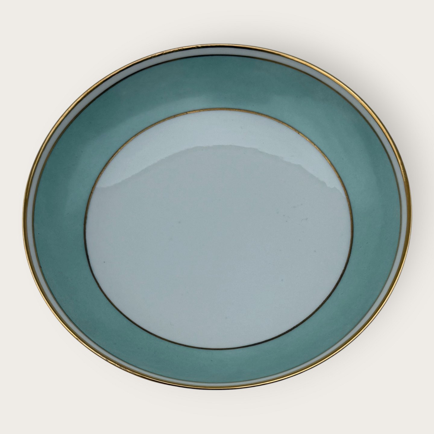 Bing & Grøndahl, Form 643 med bred turkis dekoration og guldkant, dyb tallerken, diameter 20cm, 1. sortering, *pæn stand*